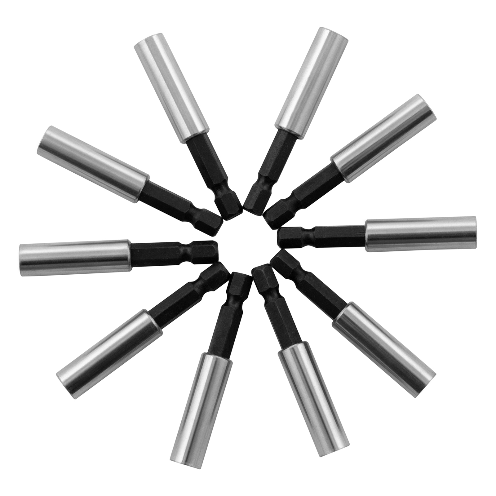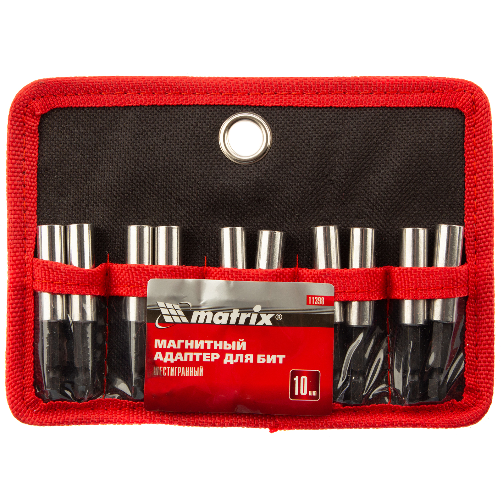 Магнитный адаптер Matrix 11398, 10 шт. в упаковке, предназначен для установки бит с шестигранным хвостовиком на шуруповерт или дрель. Битодержатель необходим тем, кто часто сталкивается с необходимостью закручивать различные шурупы, — строителям, механикам, сборщикам мебели и техники.