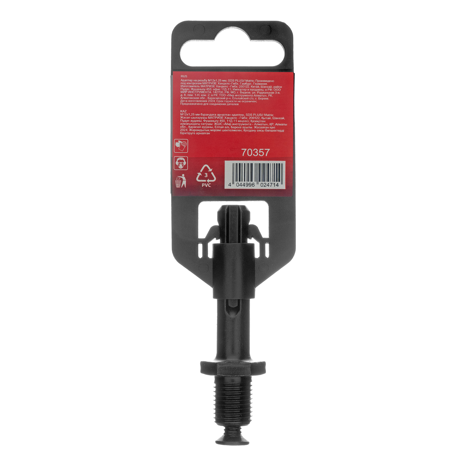 Адаптер SDS PLUS на резьбу М12 х 1,25 мм Matrix 70357 служит для установки на перфоратор быстрозажимных и ключевых патронов с резьбовым креплением. Позволяет применять сверла по металлу или бетону с цилиндрическим хвостовиком, используя перфоратор в режиме дрели.