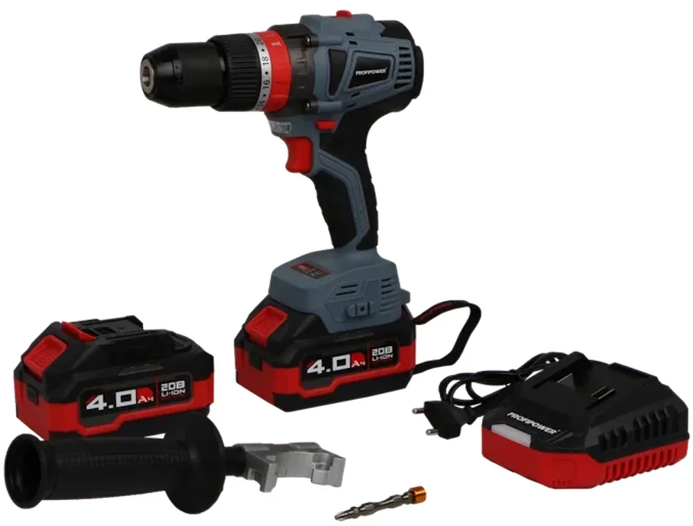- Аккумуляторная ударная дрель-шуруповерт PROFIPOWER MKDHP-20В, артикул E0087M1 с максимальным крутящим моментом 90 Нм предназначена для строительных и ремонтых работ, сверления древесины, металлов, керамики и синтетических материалов, для завинчивания или откручивания винтов, нарезания резьбы.