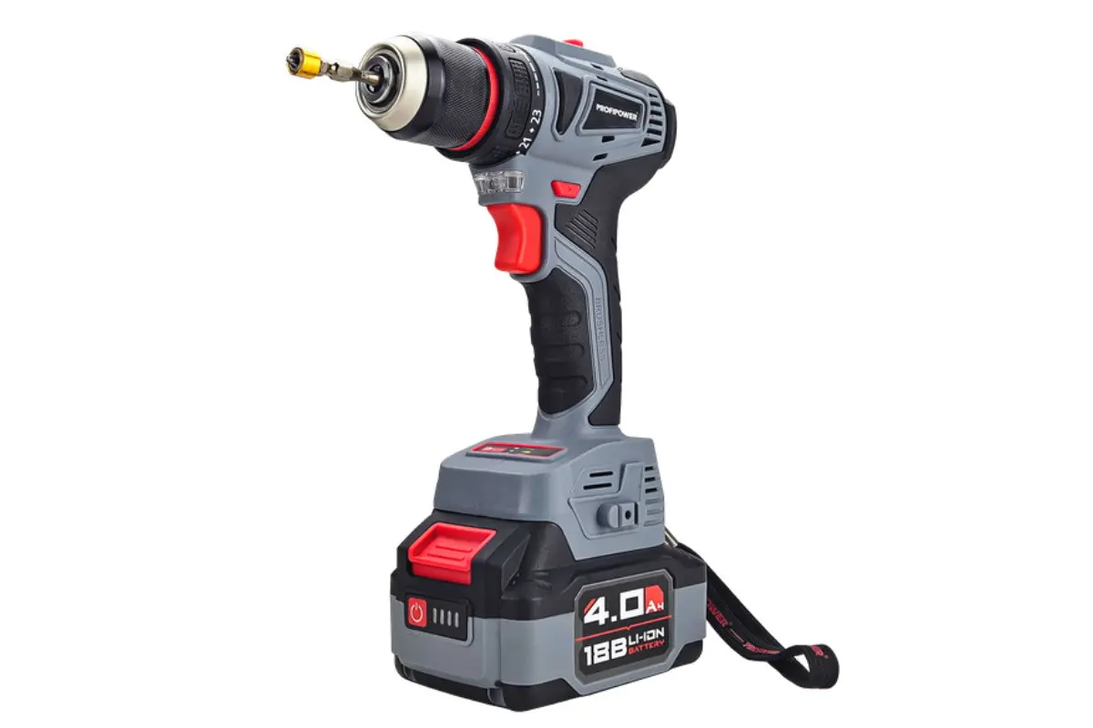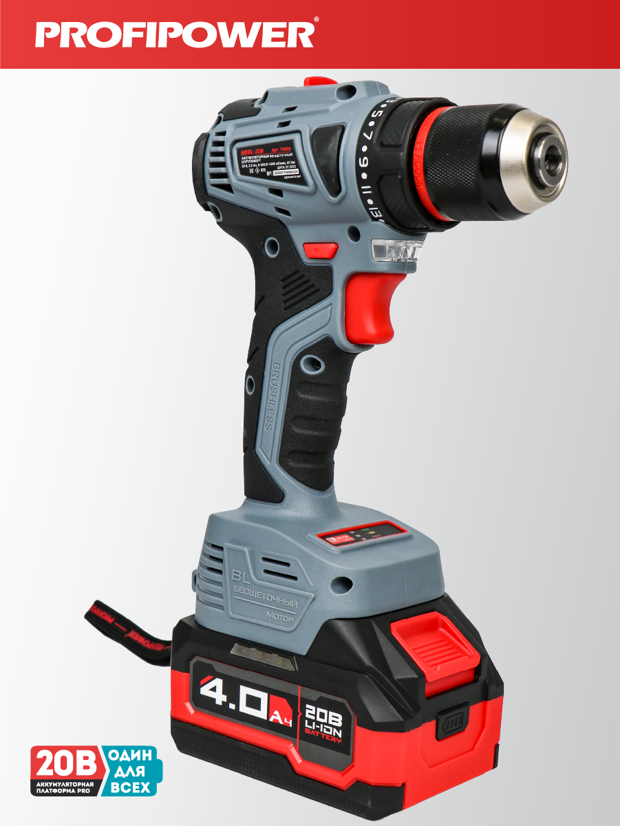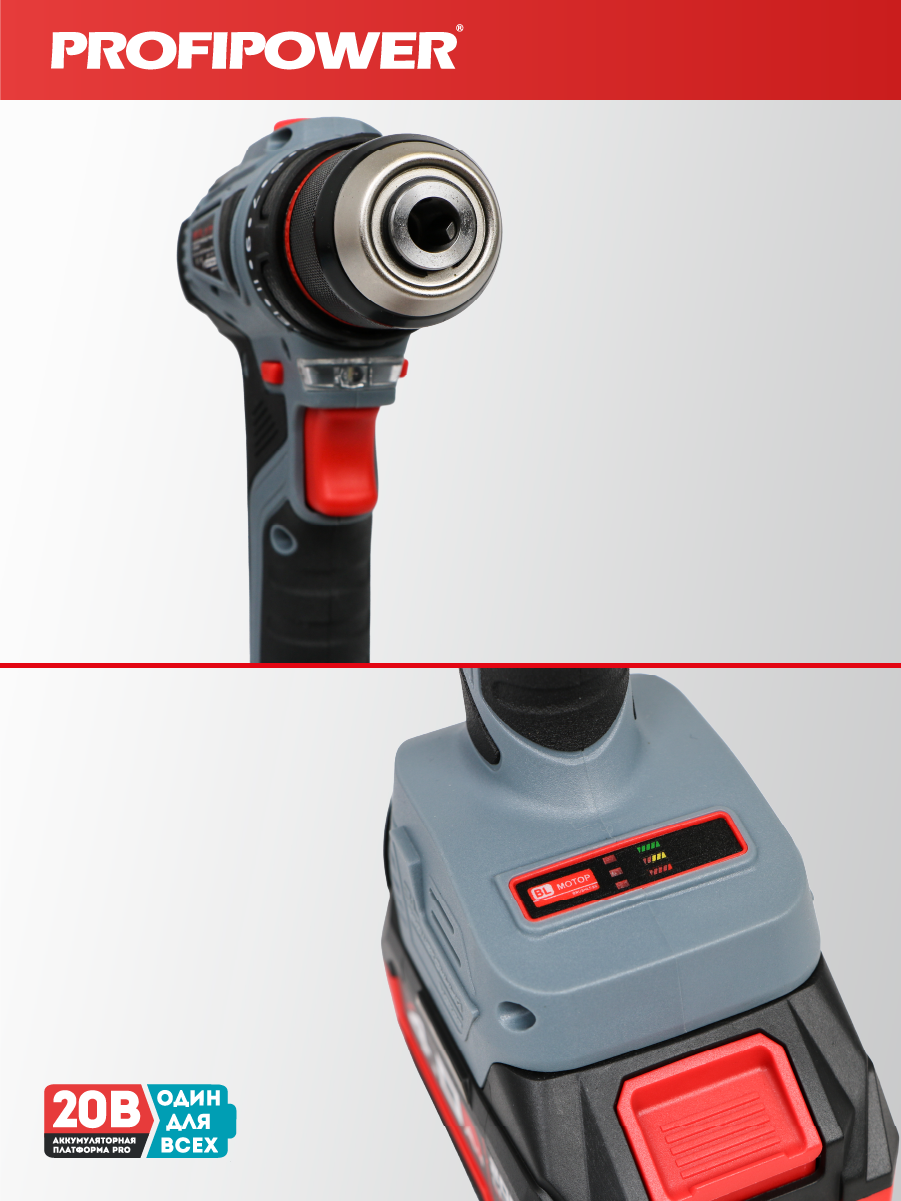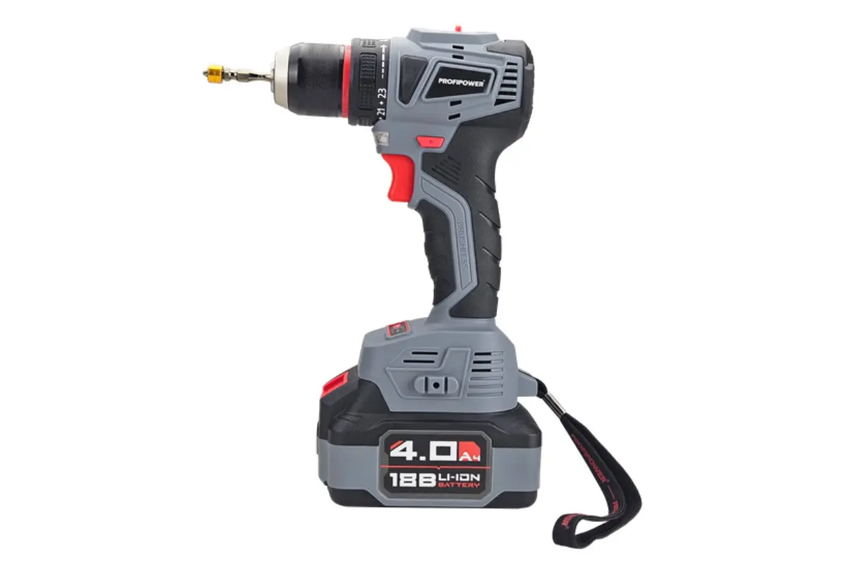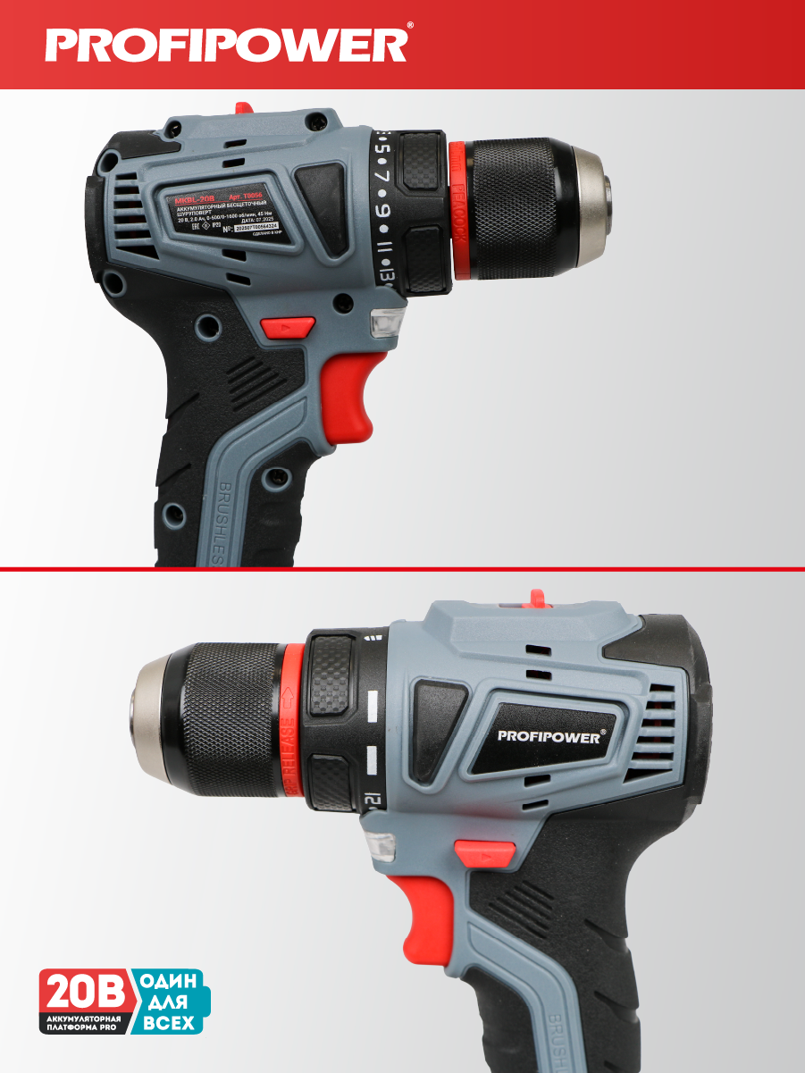 Аккумуляторный бесщёточный набор Profipower E0220 включает в себя угловую шлифовальную машину (УШМ) MKDGA-18V и шуруповёрт MKBL-18B. Характеристики УШМ MKDGA-18V: - Напряжение аккумулятора: 18 В. - Ёмкость аккумулятора: 4 А·ч. - Тип аккумулятора: Li-ion. - Диаметр диска: 125 мм. - Резьба гайки шпинделя: М14. - Максимальная толщина диска: 6,4 мм. - Посадочный диаметр: 22,2 мм. - Частота вращения шпинделя: 9000 об/мин. Характеристики шуруповёрта MKBL-18B: - Тип двигателя: бесщёточный. - Напряжение аккумулятора: 18 В. - Ёмкость аккумулятора: 2 А·ч. - Тип аккумулятора: Li-ion. - Светодиодная подсветка. - Максимальный крутящий момент: 40 Нм. - Электронная регулировка частоты вращения. - Защита от перегрузок. - Тип патрона: быстрозажимной. - Диаметр зажима: 0,8–10 мм. - Максимальный диаметр сверления в древесине: 20 мм. - Максимальный диаметр сверления в металле: 10 мм. В комплект входят два аккумулятора, зарядное устройство, магнитная бита, защитный кожух, ключ, внутренний фланец, контргайка, рукоятка, кейс и инструкция с гарантийным талоном.