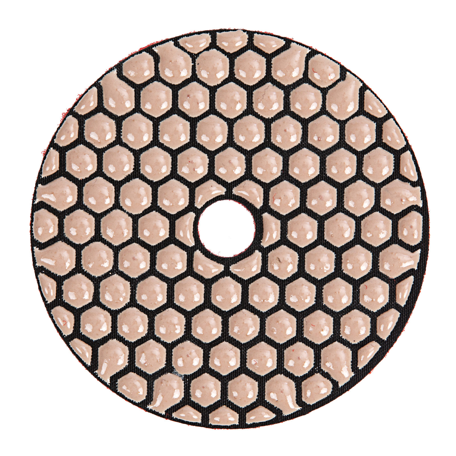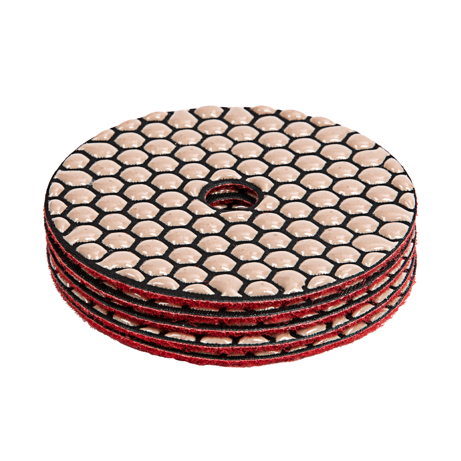 Алмазный гибкий шлифовальный круг Matrix 73503 диаметром 100 мм, с зернистостью P 400, 5 шт. в упаковке, предназначен для сухого шлифования гранита, мрамора, природного и искусственного камня, керамогранита. Используется на поверхностях разного цвета, преимущественно белых. Абразив с зернистостью P 400 снимает тонкий слой материала и применяется для чистового шлифования. Гибкий круг удобен для обработки предметов сложной формы. Оснастка используется на УШМ с установленной опорной тарелкой для АГШК.