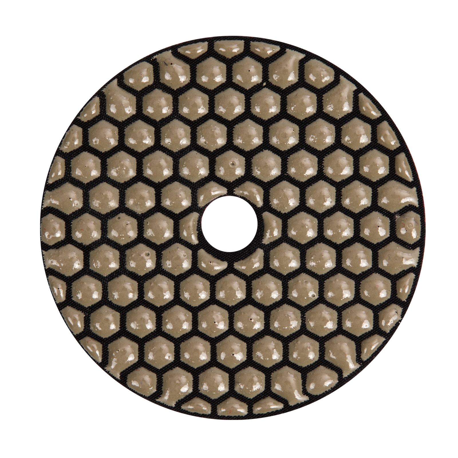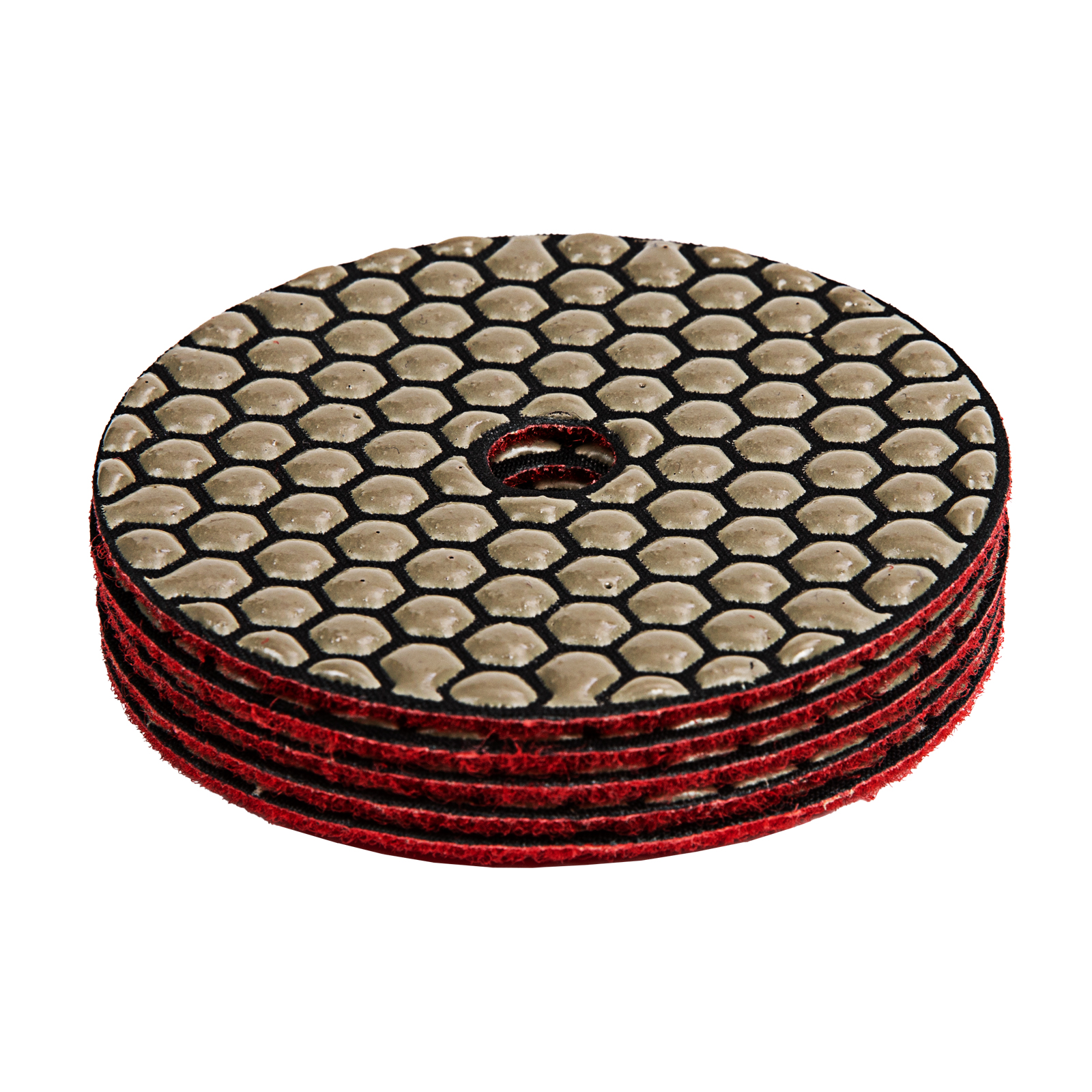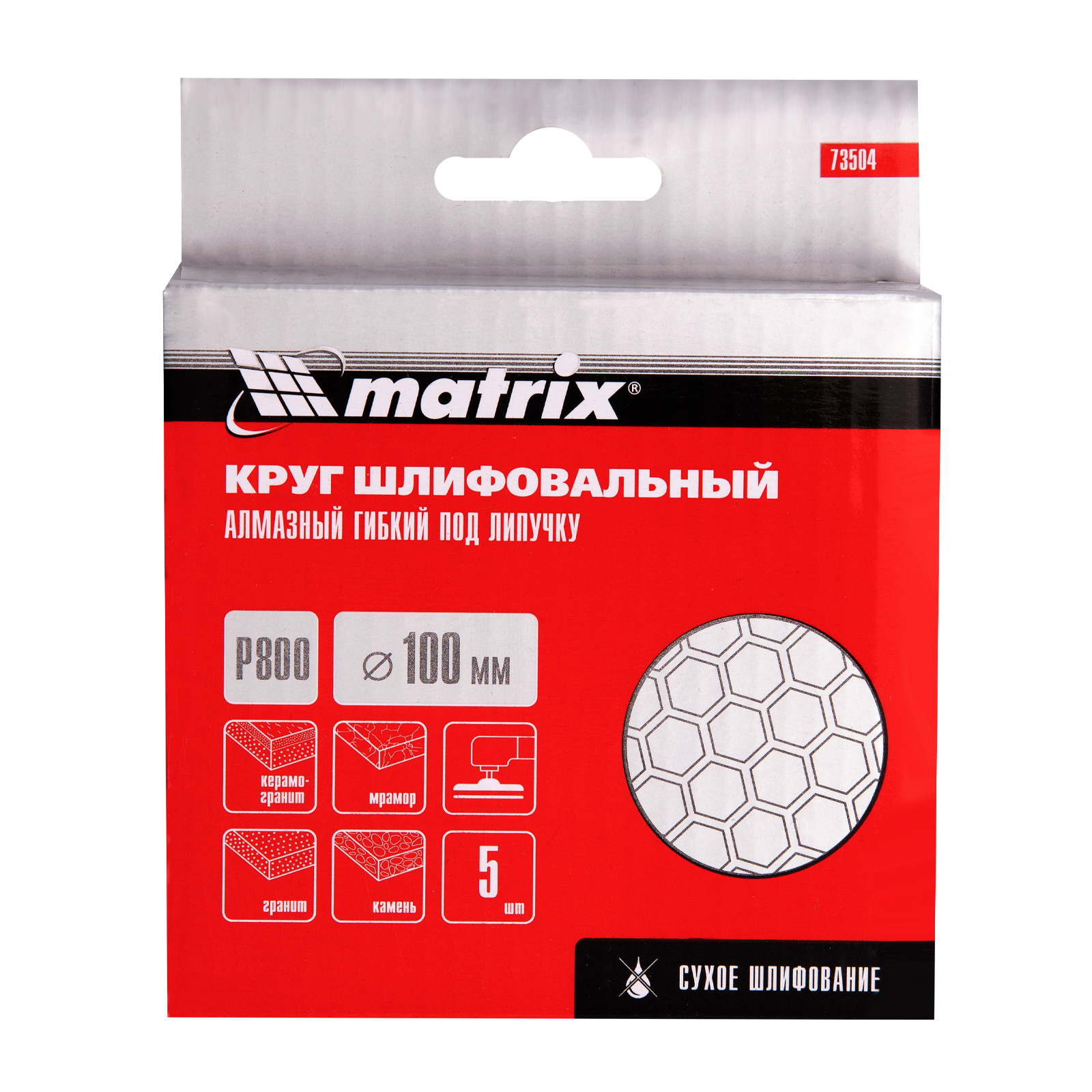 Алмазный гибкий шлифовальный круг Matrix 73504 диаметром 100 мм, с зернистостью P 800, 5 шт. в упаковке, предназначен для сухого шлифования гранита, мрамора, природного и искусственного камня, керамогранита. Используется преимущественно на цветных и черных поверхностях. Абразив с зернистостью P 800 снимает тонкий слой материала и применяется для чистового шлифования. Гибкий круг удобен для обработки предметов сложной формы. Оснастка используется на УШМ с установленной опорной тарелкой для АГШК.
