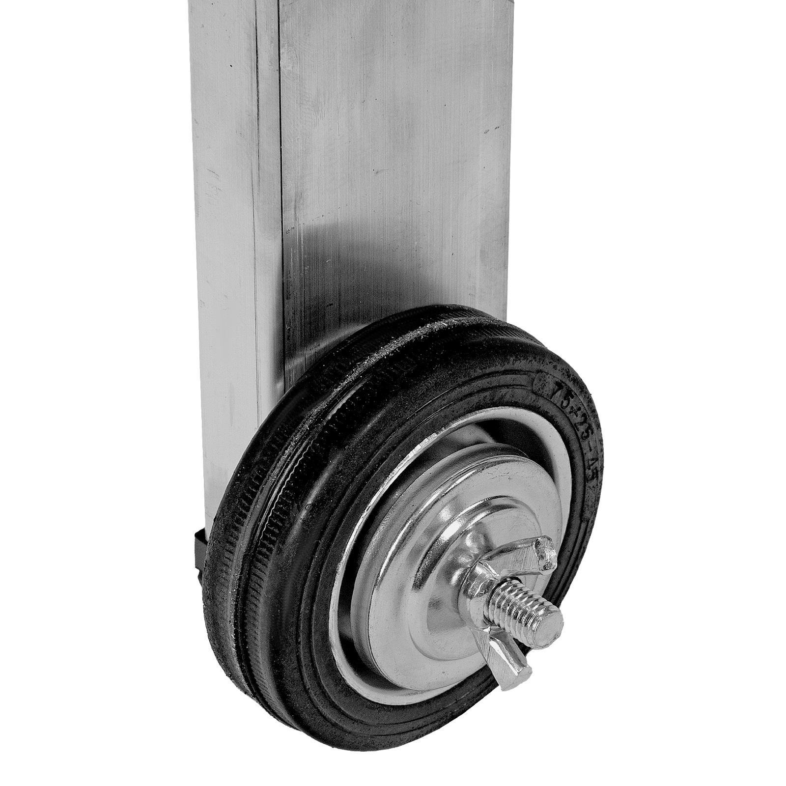 - Удобная транспортировка — лестницу-помост легко перемещать благодаря небольшому весу 11,6 кг и двум колесам.