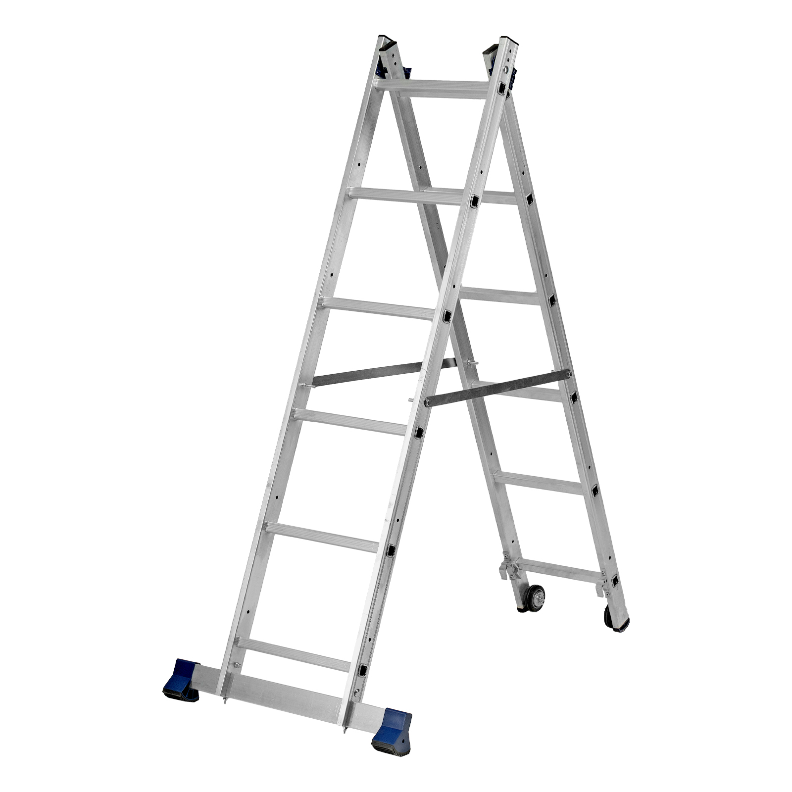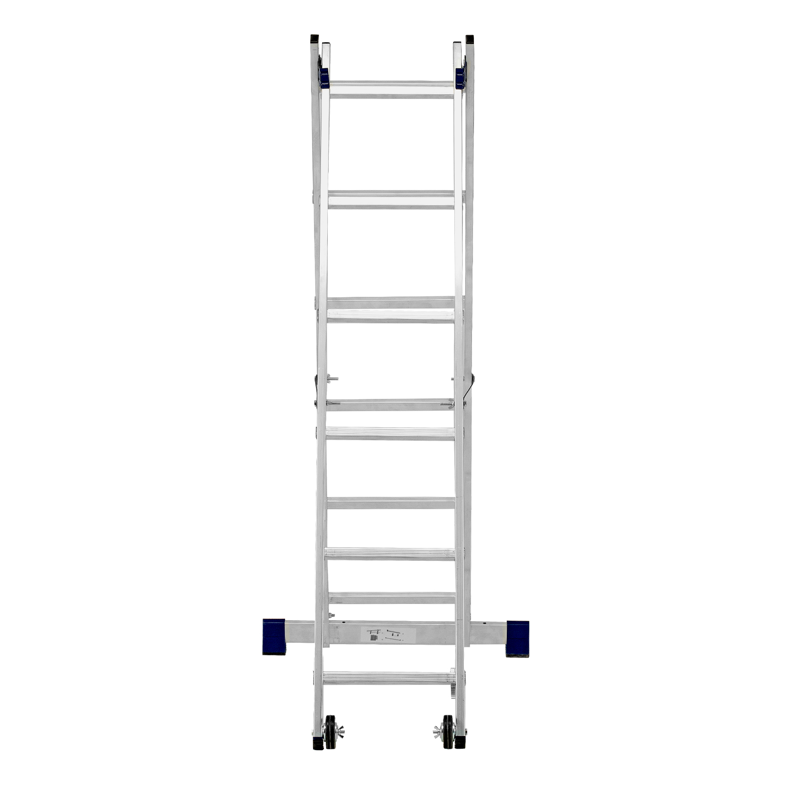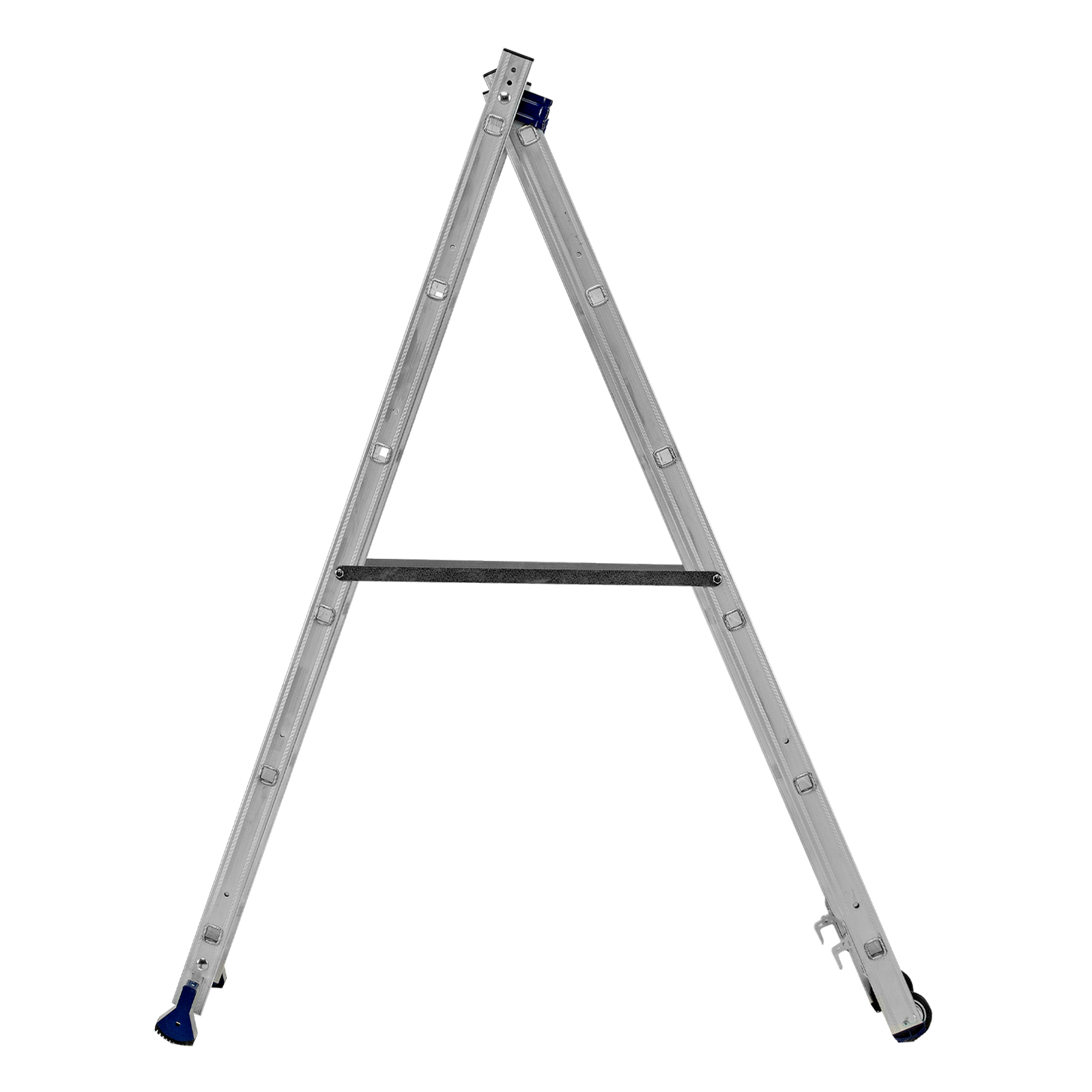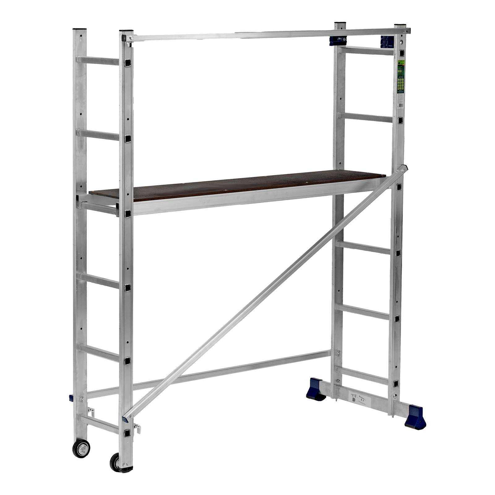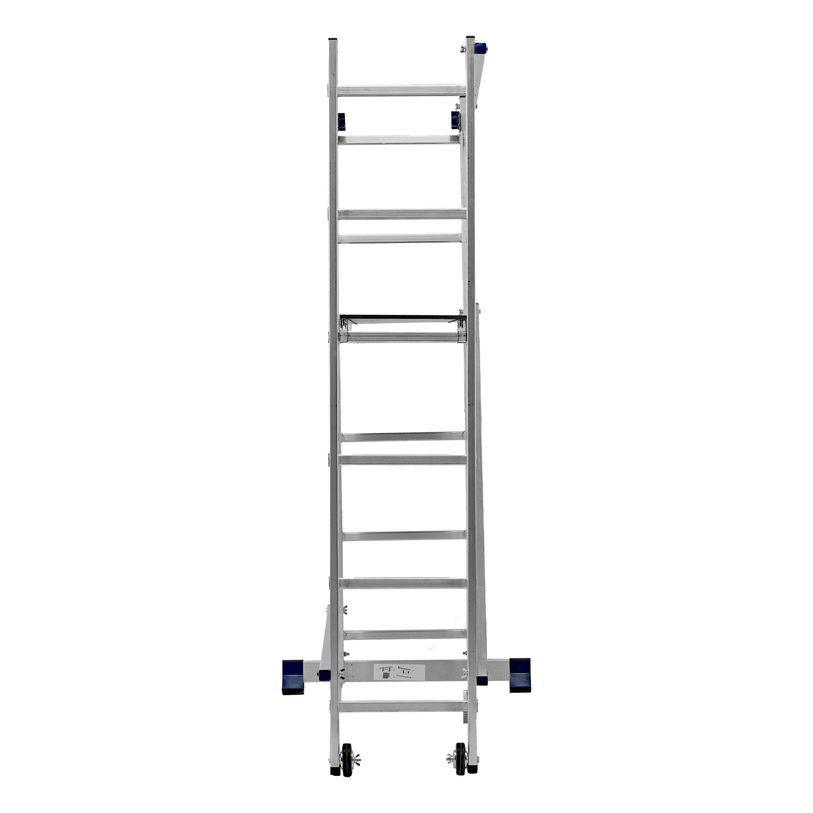 Лестница-помост 3 в 1 97970 необходима для проведения малярных и штукатурных работ на высоте нескольких метров. Площадка выдерживает нагрузку 150 кг, поэтому на ней может расположиться мастер с необходимыми инструментами. Помост трансформируется в двустороннюю стремянку и раздвижную приставную лестницу, что расширяет возможности его использования.