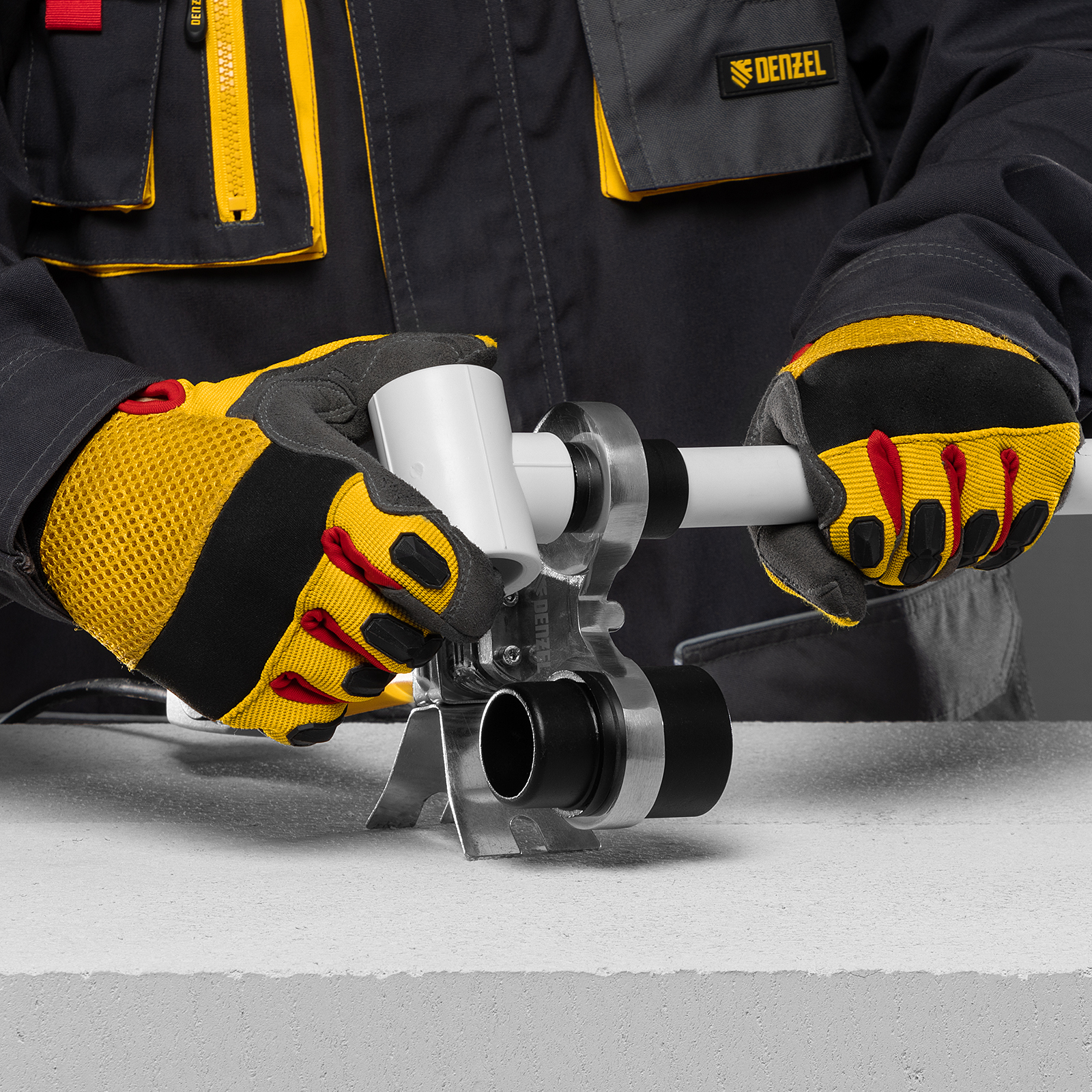 Аппарат для сварки пластиковых труб DWP-750, 750 Вт, 0-300 град, 4 насадки, 20-40 мм Denzel