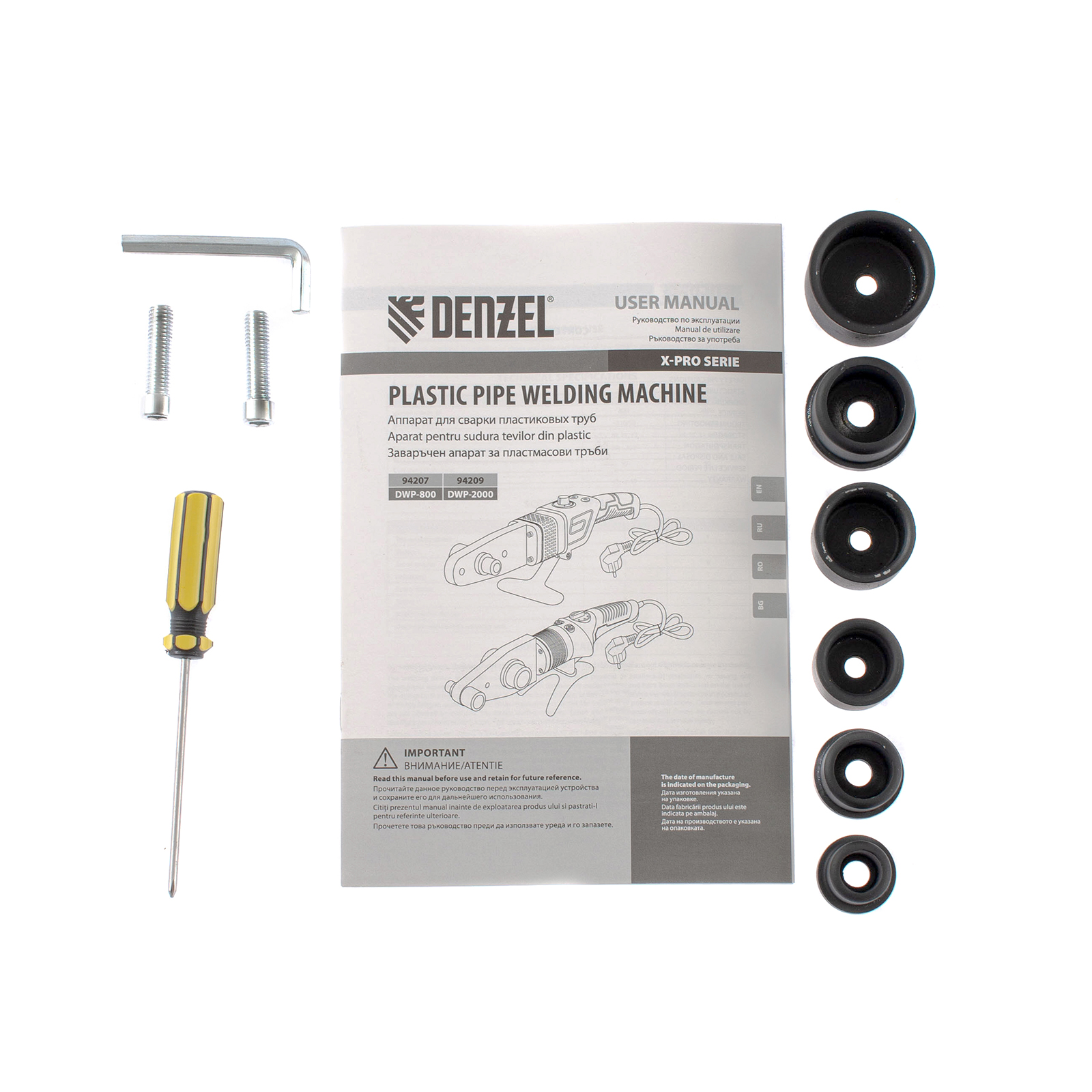 Аппарат для сварки пластиковых труб Denzel DWP-800 X-PRO 94207 мощностью 800 Вт, с комплектом насадок диаметром 20-32 мм, работает при температуре 260-300 ℃. Используется для сварки полиэтиленовых и полипропиленовых труб путем их нагрева, размягчения и последующего соединения под давлением. Оптимально подходит для самостоятельного обновления водопровода, ремонта труб, монтажа отопительной и канализационной систем в частном доме или квартире. Три сменные насадки позволяют соединять трубы диаметром 20, 25 и 32 мм.