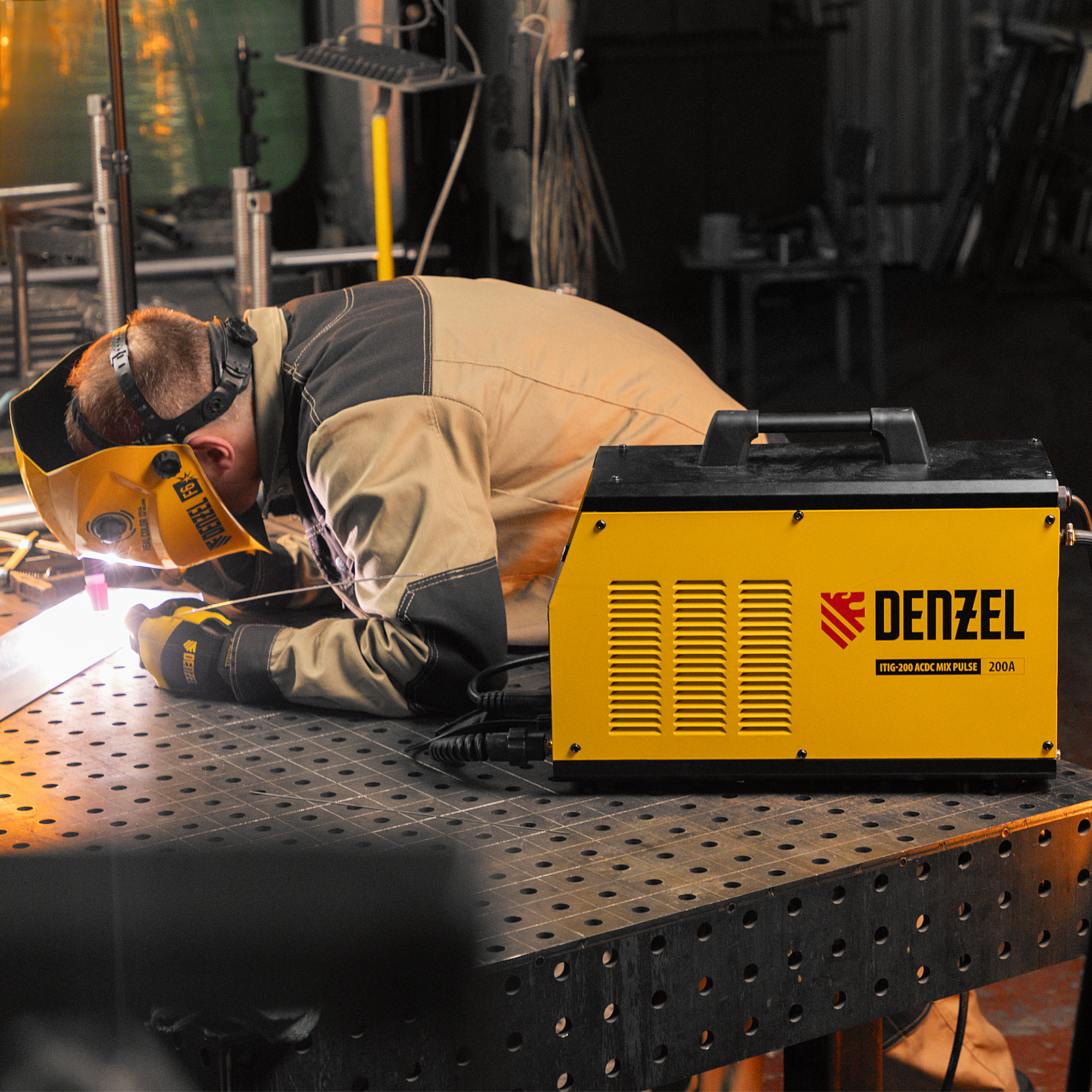 Инверторный аппарат аргонодуговой сварки Denzel ITIG-200 ACDC Mix Pulse 94319 работает с максимальным сварочным током 200 А, продолжительность включения составляет 60%. Позволяет работать с использованием как переменного, так и постоянного тока, поэтому подходит для сварки не только сплавов из стали, но и цветных металлов, таких как медь, титан, а также алюминия и его сплавов. Используется для аргонодуговой сварки неплавящимся электродом (TIG) и MMA-сварки покрытым электродом диаметром 4-5 мм. Возможны следующие режимы TIG-сварки: на постоянном токе DC, импульсным постоянным током Pulse DC, сварка переменным током AC, а также переменным током с режимом глубокого проникновения в импульсном режиме MIXTIG AC. Сварочный аппарат изготовлен с использованием передовой технологии IGBT, обеспечивает стабильный сварочный ток и высокий КПД в течение всего срока службы.