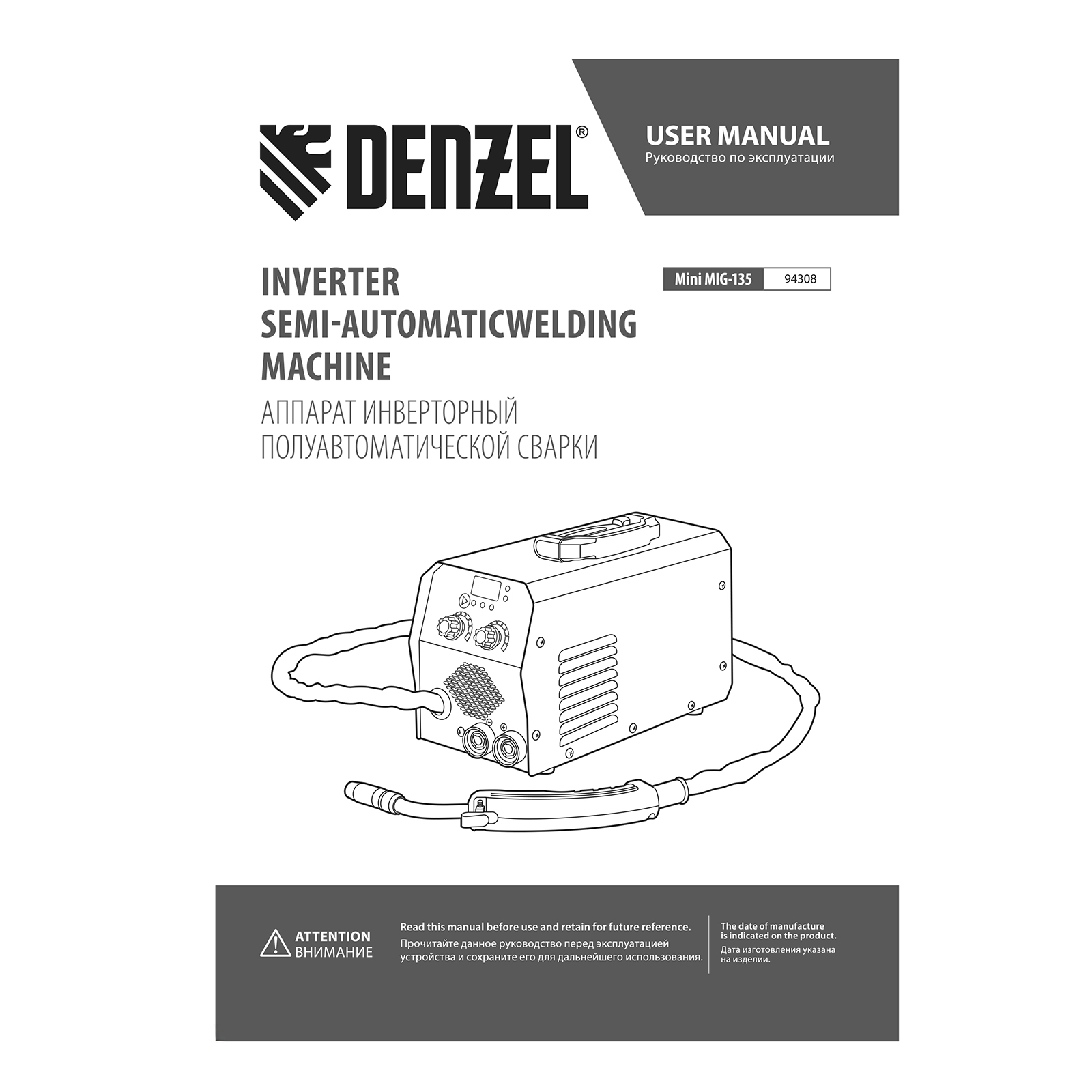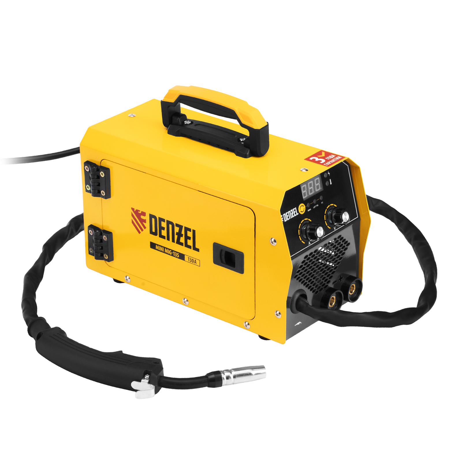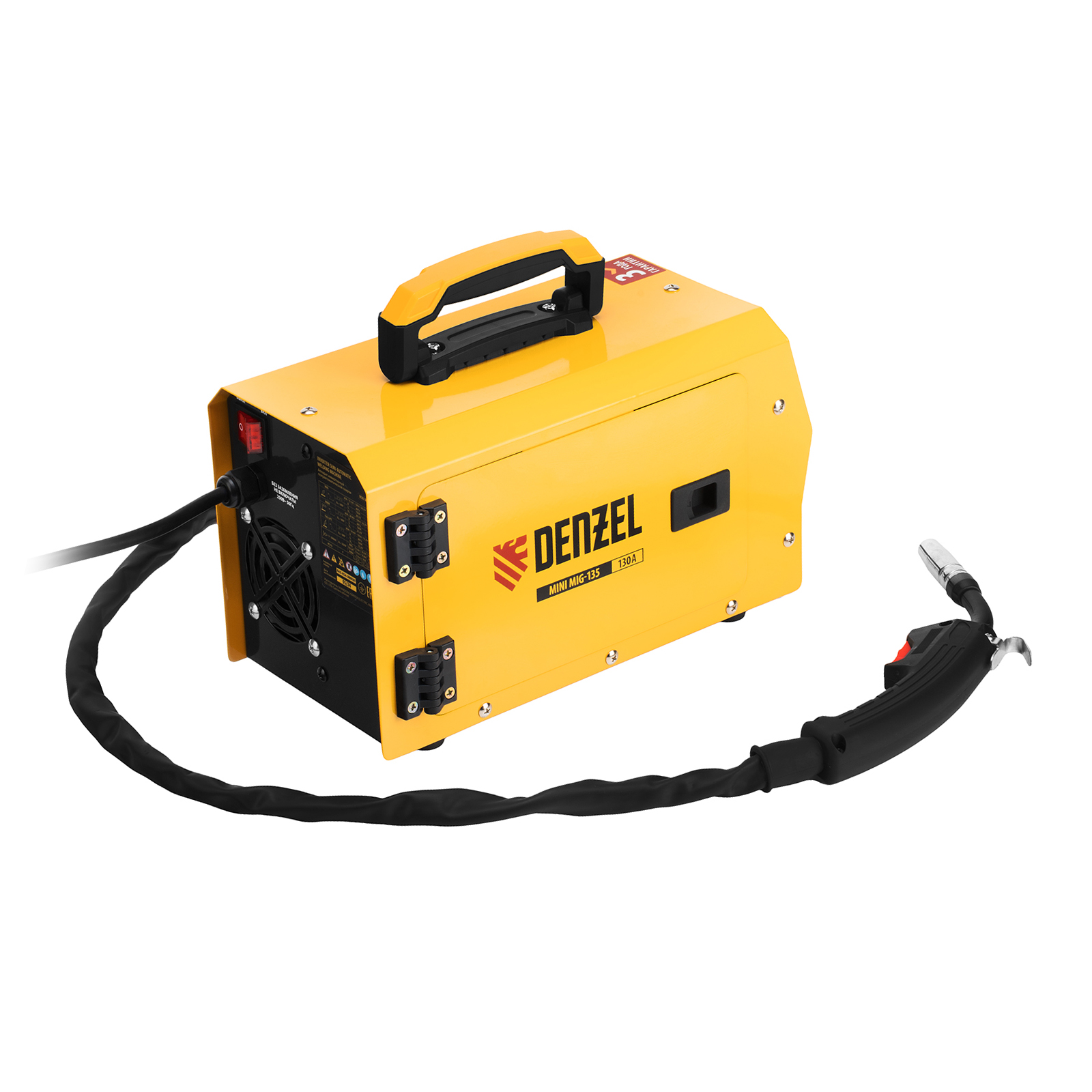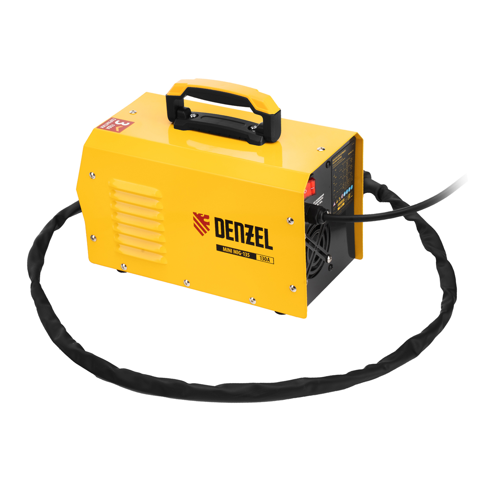 Инверторный аппарат полуавтоматической сварки Denzel Mini MIG-135 94308 предназначен для выполнения сварочных работ при постоянном токе до 130 A и продолжительности включения 60%. Доступные режимы: ручная дуговая сварка покрытым электродом (MMA), сварка порошковой (или флюсовой) проволокой диаметром 0,6/0,8 мм (FCAW), а также аргонодуговая сварка неплавящимся электродом (Lift TIG). Горелка TIG не входит в комплект поставки и приобретается отдельно.