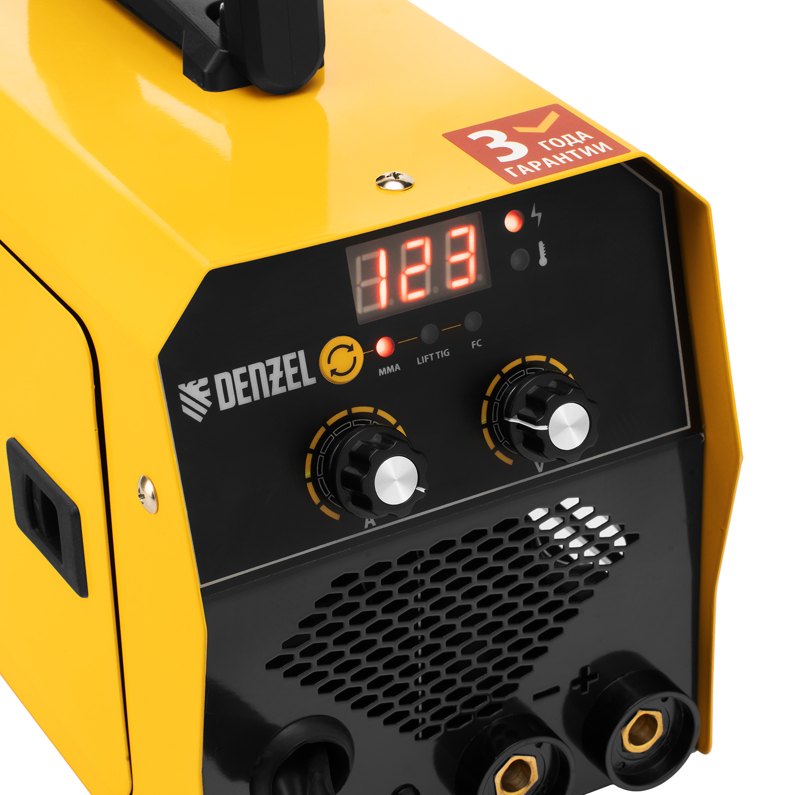 - Удобный контроль работы — заданное значение сварочного тока отображается на цифровом дисплее.