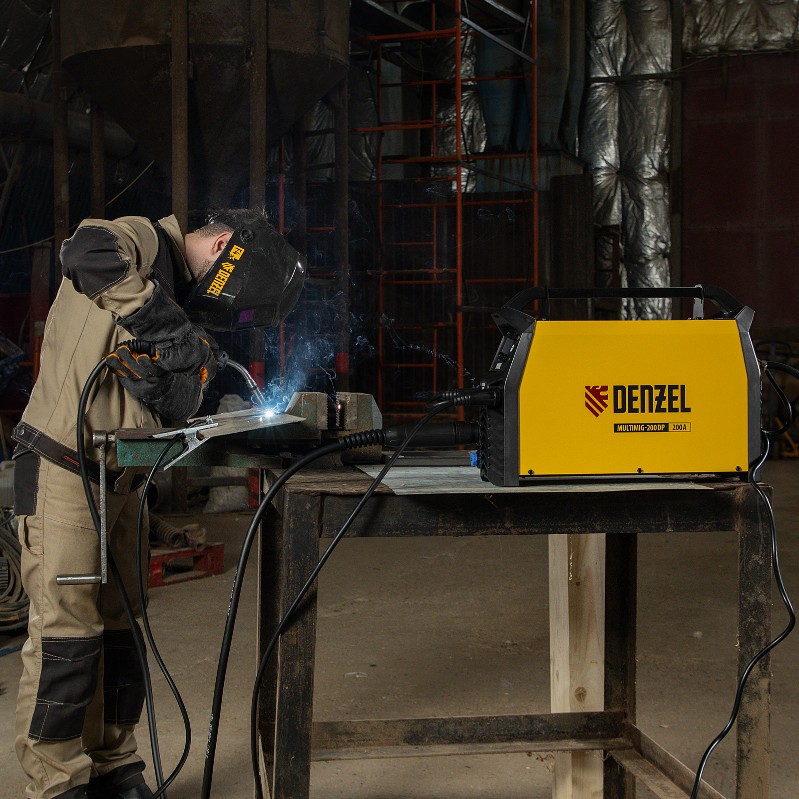 Инверторный аппарат полуавтоматической сварки Denzel MultiMIG-200DP Synergy Double Pulse 94313 предназначен для сварки алюминия и его сплавов, сварки нержавеющей стали и ее сплавов, в том числе тонколистовой работы на постоянном токе, а также в режимах Пульс и Двойной пульс.