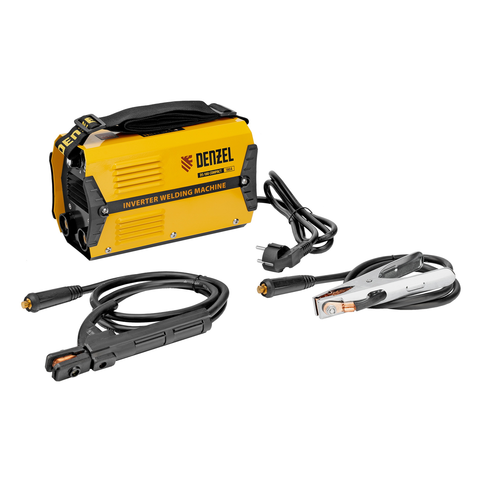 Инверторный аппарат дуговой сварки Denzel DS-180 Compact 94372 с максимальной силой тока 180 А имеет продолжительность включения 70% и работает с электродами диаметром 1,6-4 мм. Используется для сварки стальных металлоконструкций, будет полезен в мастерской, гараже или на даче. Прост в эксплуатации и подойдет даже новичку. Аппарат способен работать даже при низком входном напряжении 150 В, имеет высокий показатель продолжительности включения 70% и быстро остывает, что повышает скорость и эффективность сварки.