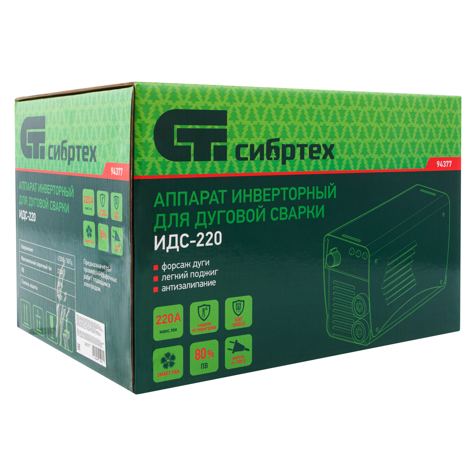 Инверторный аппарат дуговой сварки Сибртех ИДС-220 94377 с максимальной силой сварочного тока 220 А и продолжительностью включения 80% работает с электродами диаметром 1,6-5 мм. Позволяет сваривать металлические конструкции толщиной до 14 мм. Будет полезен в гараже, частном хозяйстве, на строительной площадке, а также в сфере ЖКХ. Аппарат стабильно работает даже при пониженном входном напряжении 150 Вт. Модель отличается простым управлением и бесшумной работой.