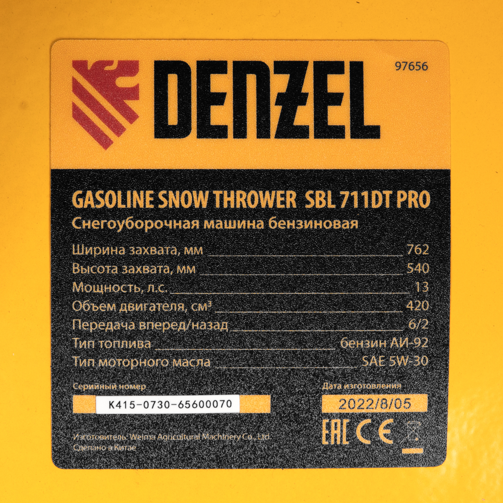 Бензиновая снегоуборочная машина Denzel SBL 711DT PRO 97656 на гусеничном приводе, с двигателем объемом 420 см3, электрическим стартером и разблокировкой дифференциала, предназначена для уборки снега на загородном участке, придомовой территории, подъездных дорогах и улицах СНТ, автомобильных парковках. Мощный двигатель обеспечивает наибольший крутящий момент 28,5 Нм и позволяет работать с любым типом снега в самых сложных погодных условиях.