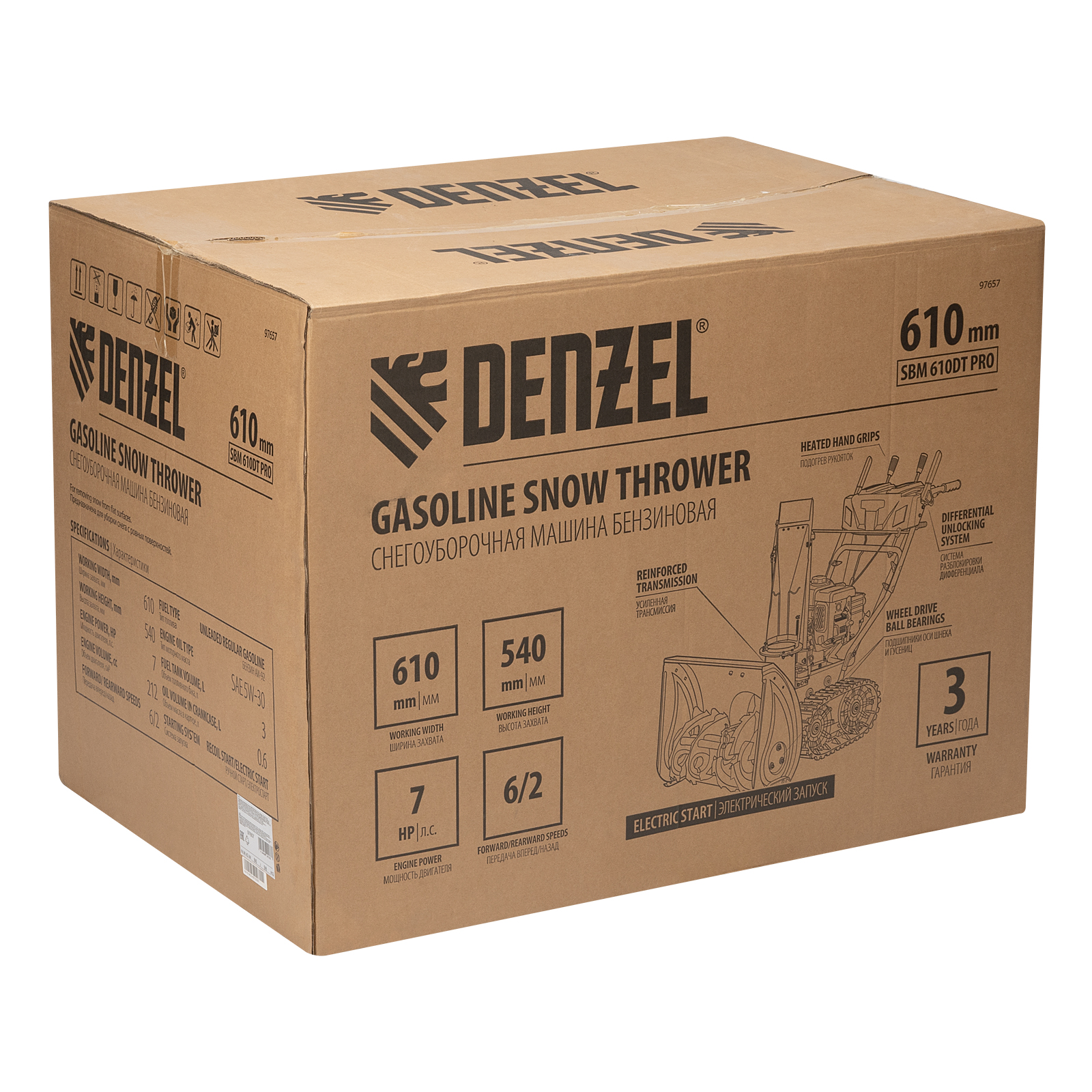 Бензиновая снегоуборочная машина Denzel SBM 610DT PRO 97657 с двигателем объемом 212 см3, электрическим стартером и разблокировкой дифференциала, может использоваться на подъездных дорогах и улицах СНТ, автомобильных парковках, на загородном участке или придомовой территории. Мощный двигатель обеспечивает оптимальный расход топлива, а гусеничный привод — наилучшую проходимость в самых сложных погодных условиях. Благодаря кожуху шнека шириной 710 мм (с учетом подрезателей Denzel 97102) и высоте захвата 540 мм техника быстро убирает снег с участка большой площади.