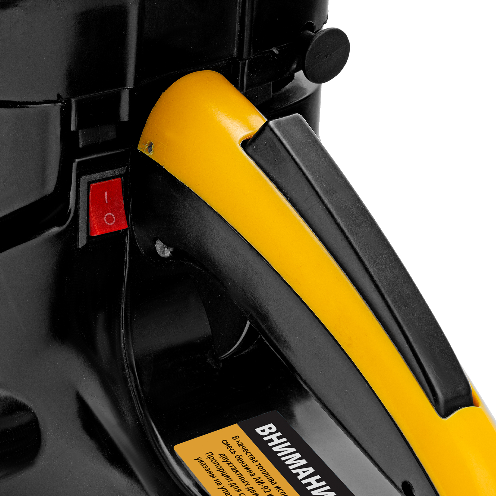 Безопасность — режущий диск закрыт защитным кожухом, блокиратор курка газа исключает случайный запуск двигателя.