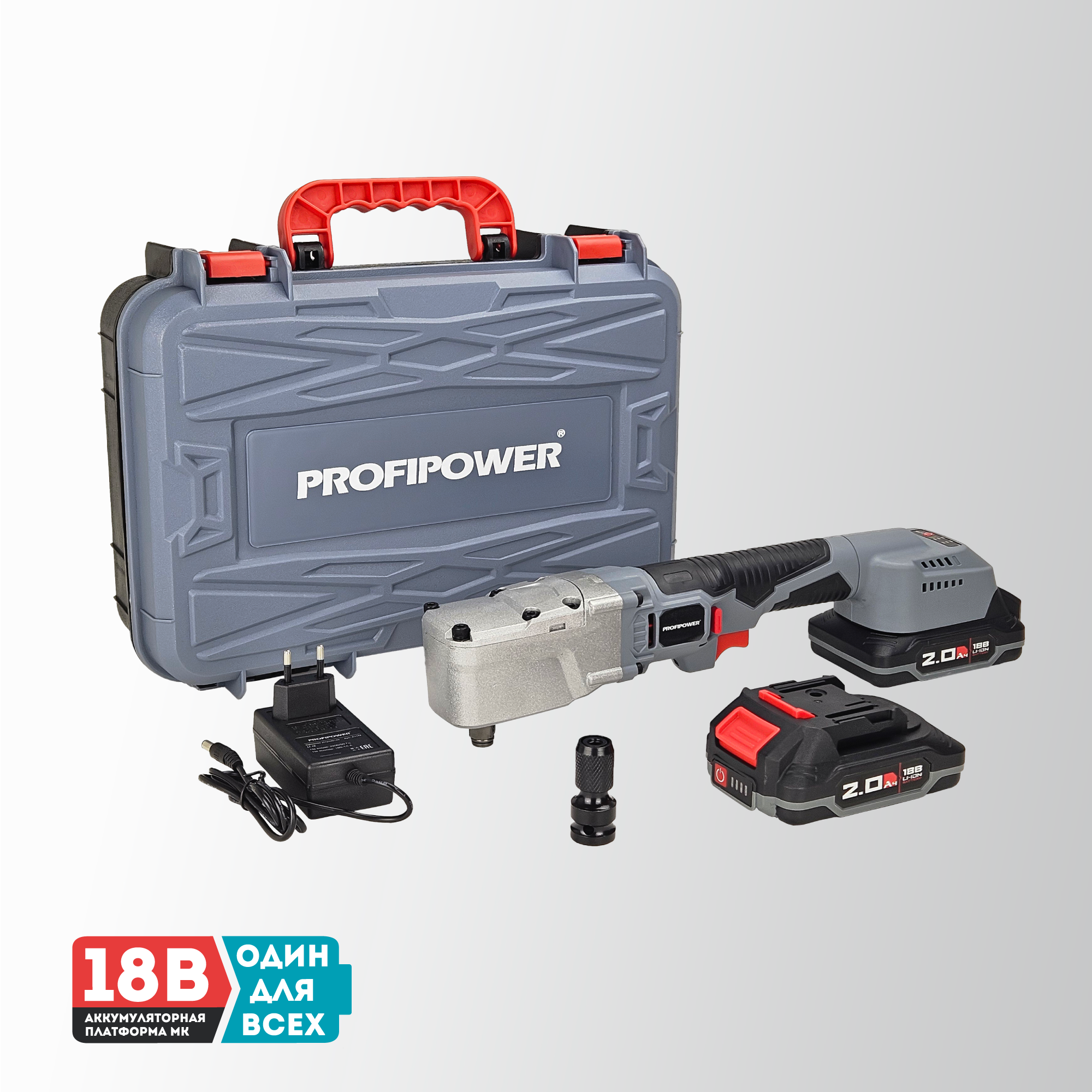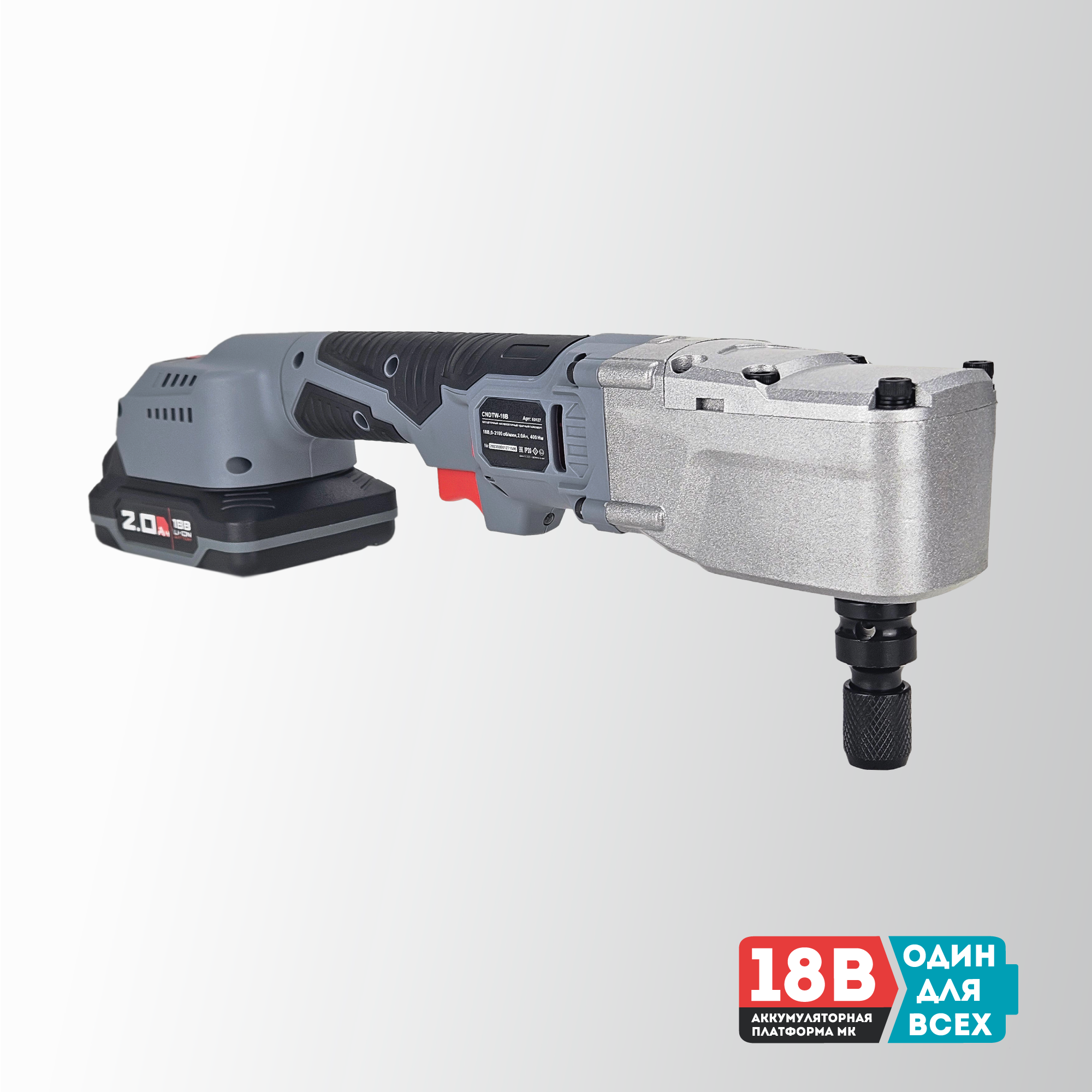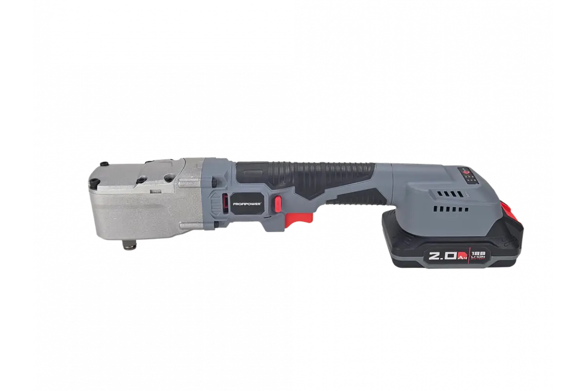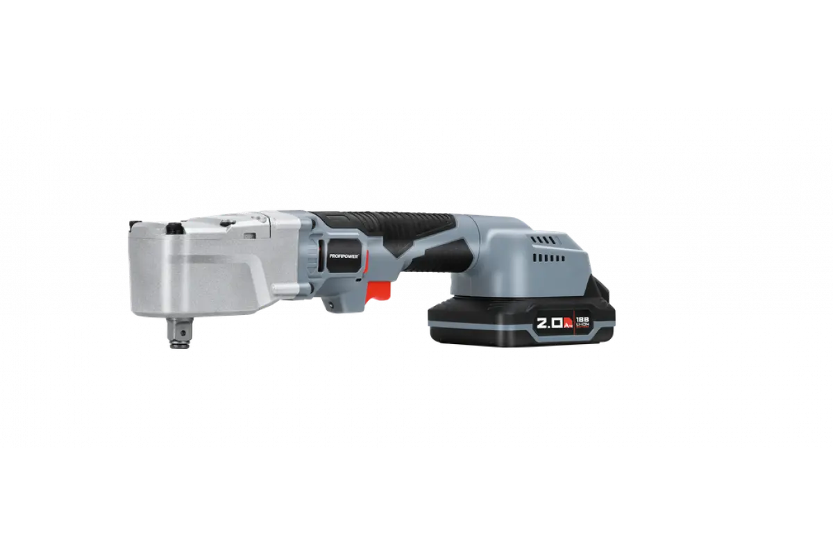 Аккумуляторный угловой гайковерт бесщеточный ProfiPower CNDTW-18B 18 вольт подходит для завинчивания и откручивания крупного крепежа (винтов, шпилек, нагелей, «глухарей», крупных саморезов), мелких гаек и болтов. Крутящий момент 440 Нм расширяет сферу применения инструмента. Бесщеточный двигатель – компактен, более стабильные рабочие параметры, не изнашивается и прост в обслуживании. Встроенный тангенциальный ударный механизм автоматически подключается в случае нагрузки на вал и помогает использовать высокий крутящий момент при одновременно низкой отдаче на руку. Это помогает справиться с прочно сидящем крепежом или достаточно твердым материалом. Наличие двух режимов закручивания с различной частотой ударов и скоростью вращения позволяет правильно выбрать параметры инструмента в зависимости от размера винта и типа рабочего основания. Электронная регулировка скорости нажатием на триггер облегчает выполнение операций. Подключаемый импульсный режим выкручивания прочно сидящих винтов, а также дополнительный режим откручивания с защитой от срыва настраивает инструмент под конкретную задачу для наилучших результатов работы. Электронный бесконтактный запуск двигателя уменьшает нагрев, не изнашивает детали и обеспечивает максимально эффективную работу. Защита от перегрузок автоматически отключит инструмент, чтобы предохранить аккумулятор от перегрева и быстрого разряда. Эргономичный полимерный корпус с резиновыми демпферами обеспечивает превосходный контроль инструмента и его безопасную эксплуатацию. Держатель с автоматической фиксацией насадок 1/4" (6,35мм) позволяет быстро и легко заменять оснастку. Металлический корпус редуктора защищает детали от повреждения и перегрева. Яркая светодиодная подсветка рабочей области облегчает выполнение операций в затемненных местах. Единая аккумуляторная платформа серии MK подходит для всех типов электроинструментов и садовой техники этой линейки. Аккумуляторы доступны в различных размерах и вариантах ёмкости. Они взаимозаменяемые