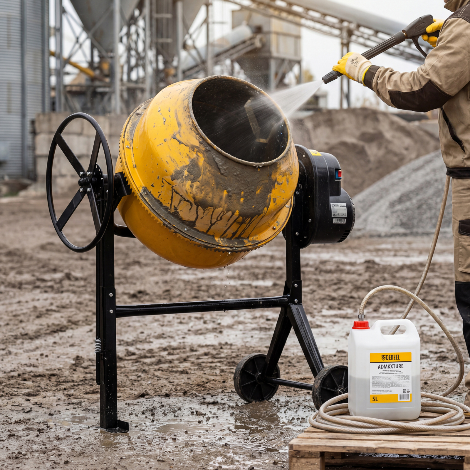 - Удобная транспортировка — колеса упрощают перемещение бетоносмесителя по строительной площадке.