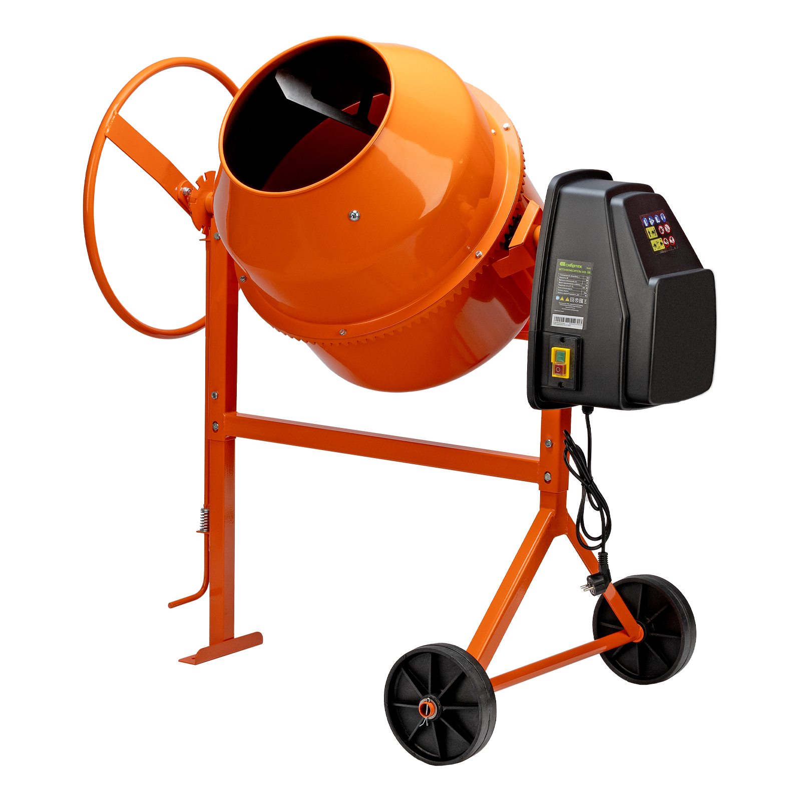 - Мобильность — маневренные колеса из прочного пластика облегчают перемещение бетоносмесителя по неровной земле, что особенно удобно на строительной площадке.