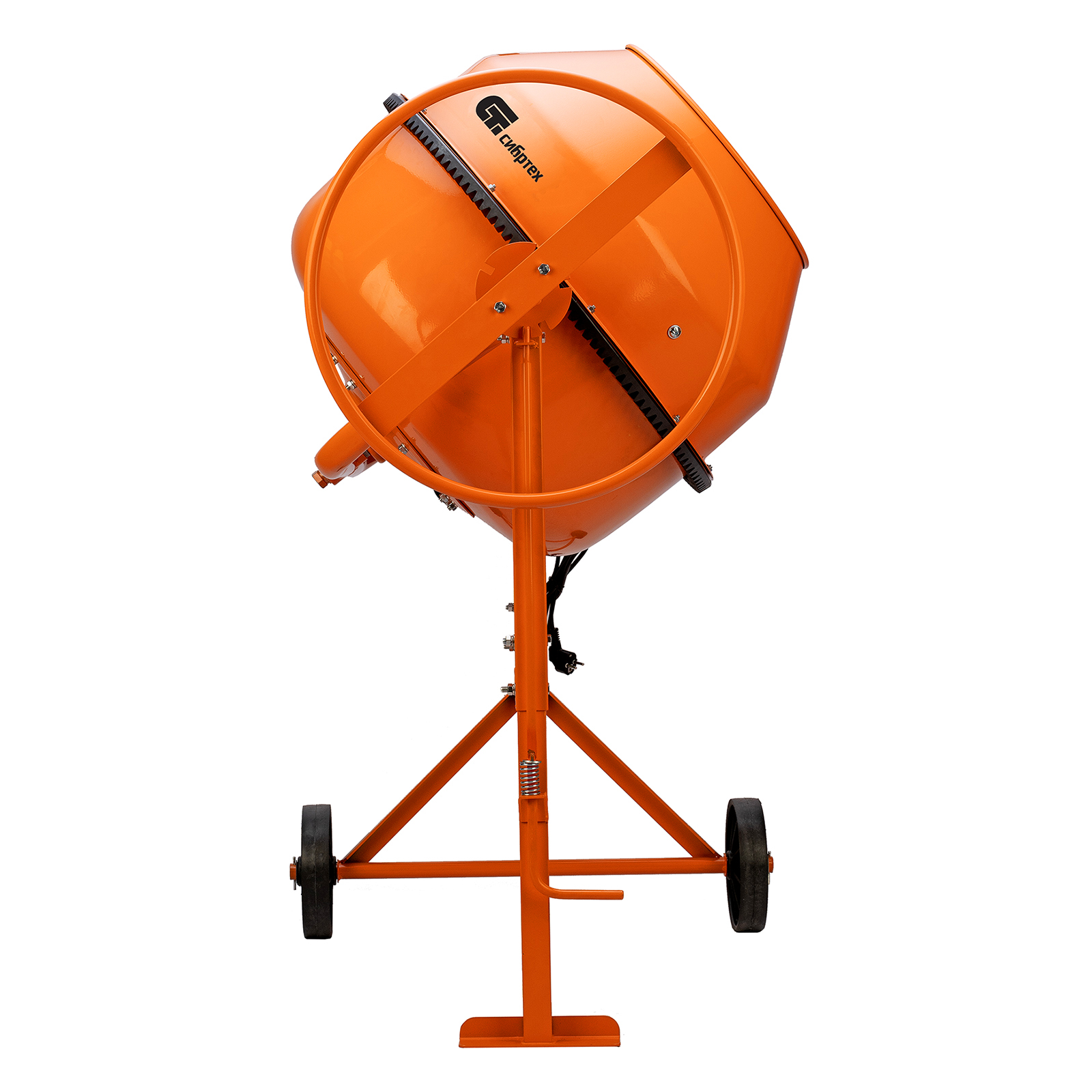 - Удобная загрузка и выгрузка смеси — барабан легко фиксируется в наклонном положении при помощи педали.