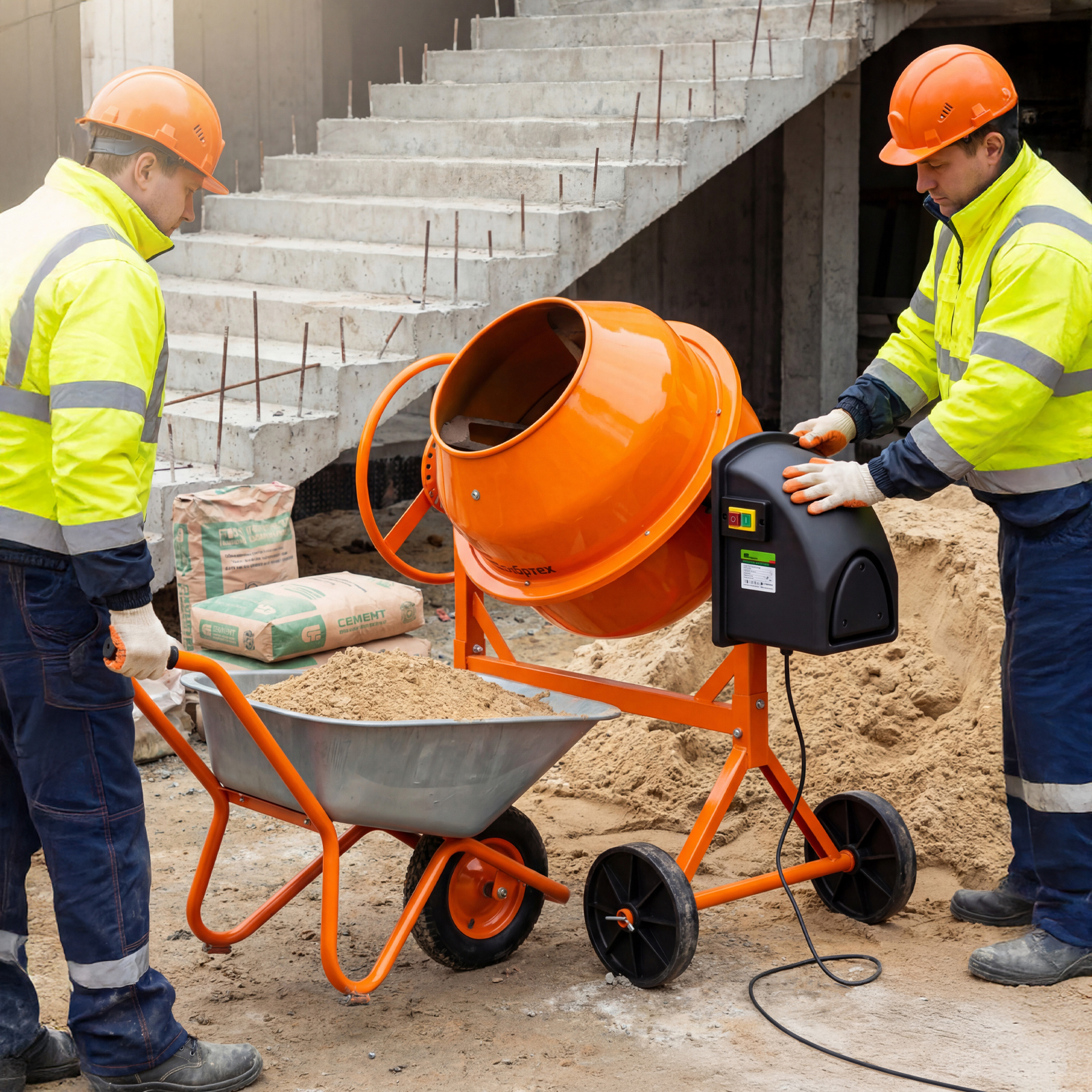 - Удобное перемещение по рабочей площадке — бетоносмеситель оснащен колесами диаметром 20,5 мм.