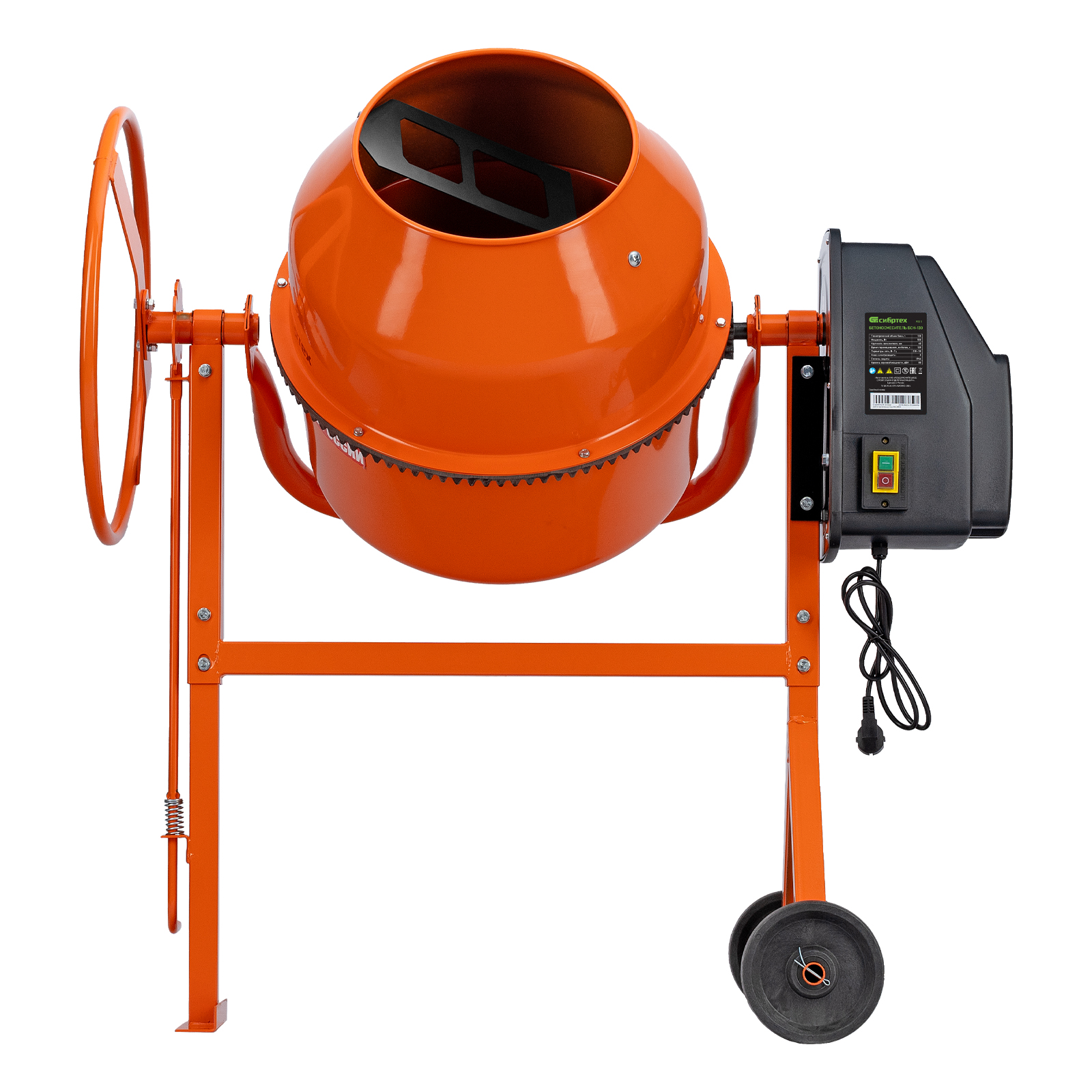 Двигатель мощностью 500 Вт обеспечивает высокую производительность, при этом не создает значительной нагрузки на электросеть. Бетоносмеситель пригодится для проведения строительных работ небольшого объема.