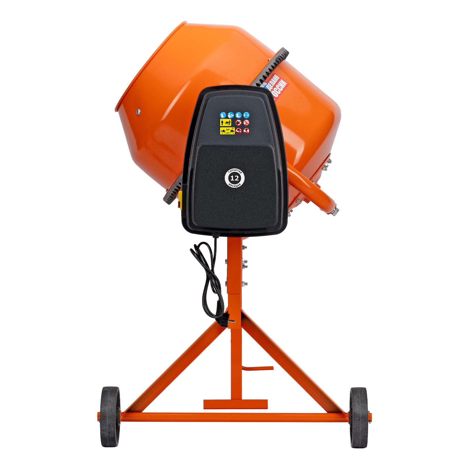 - Электробезопасность — токопроводящие элементы надежно изолированы, бетоносмесителю присвоен класс защиты II.