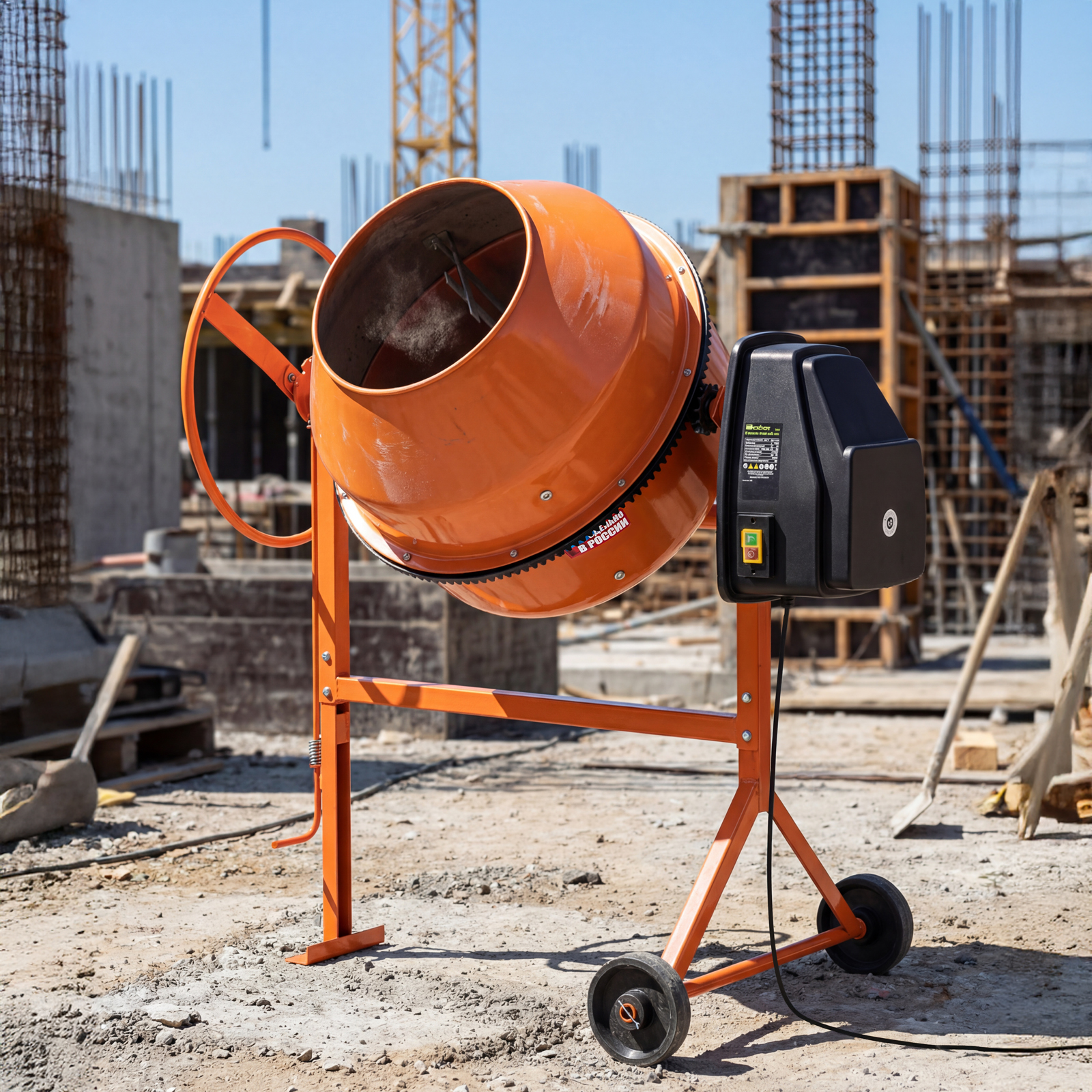 Двигатель мощностью 700 Вт обеспечивает высокую производительность, при этом не создает значительной нагрузки на электросеть. Бетоносмеситель пригодится для проведения строительных работ небольшого объема.