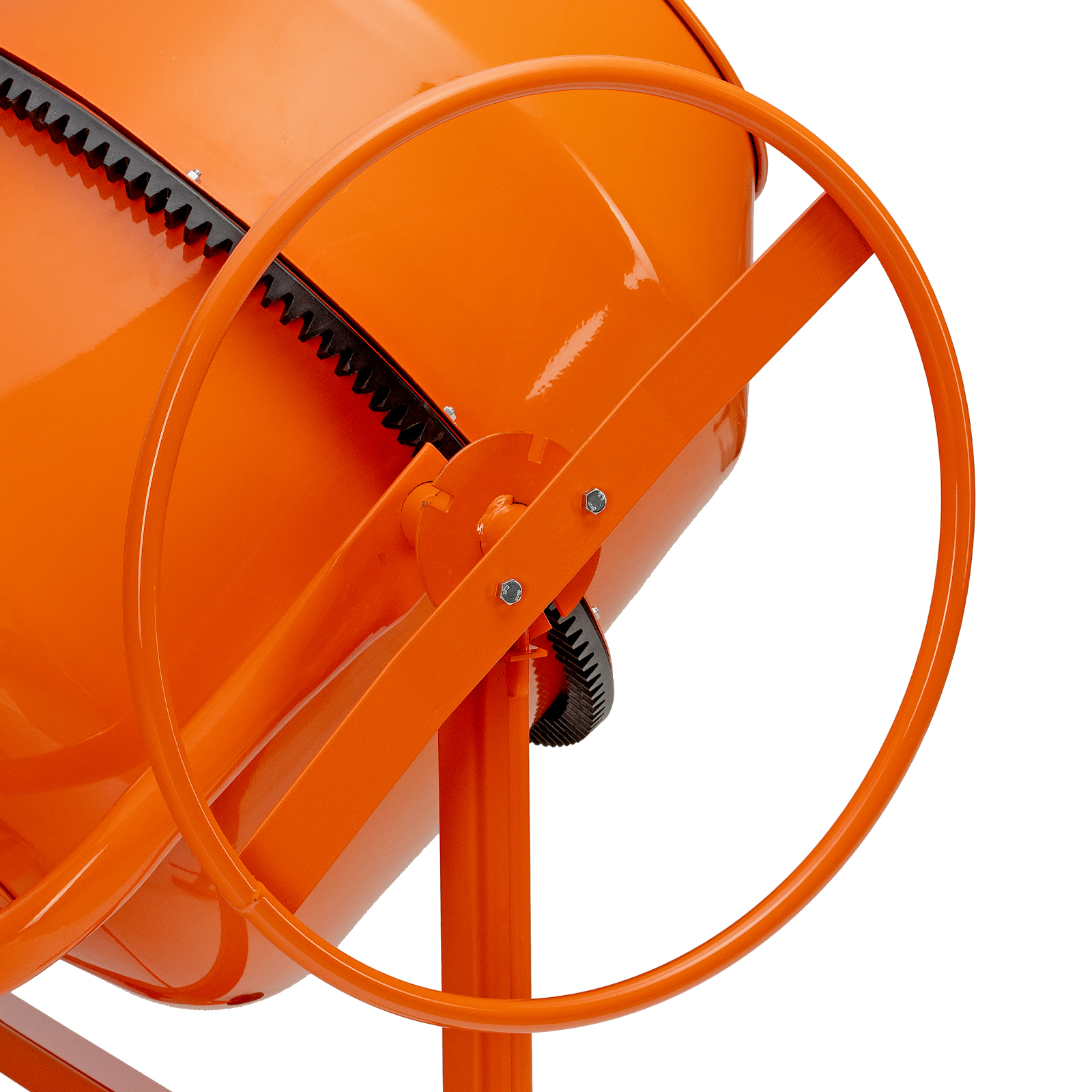 - Удобная загрузка и выгрузка смеси — барабан наклоняется при помощи маховика и легко фиксируется в нужном положении.