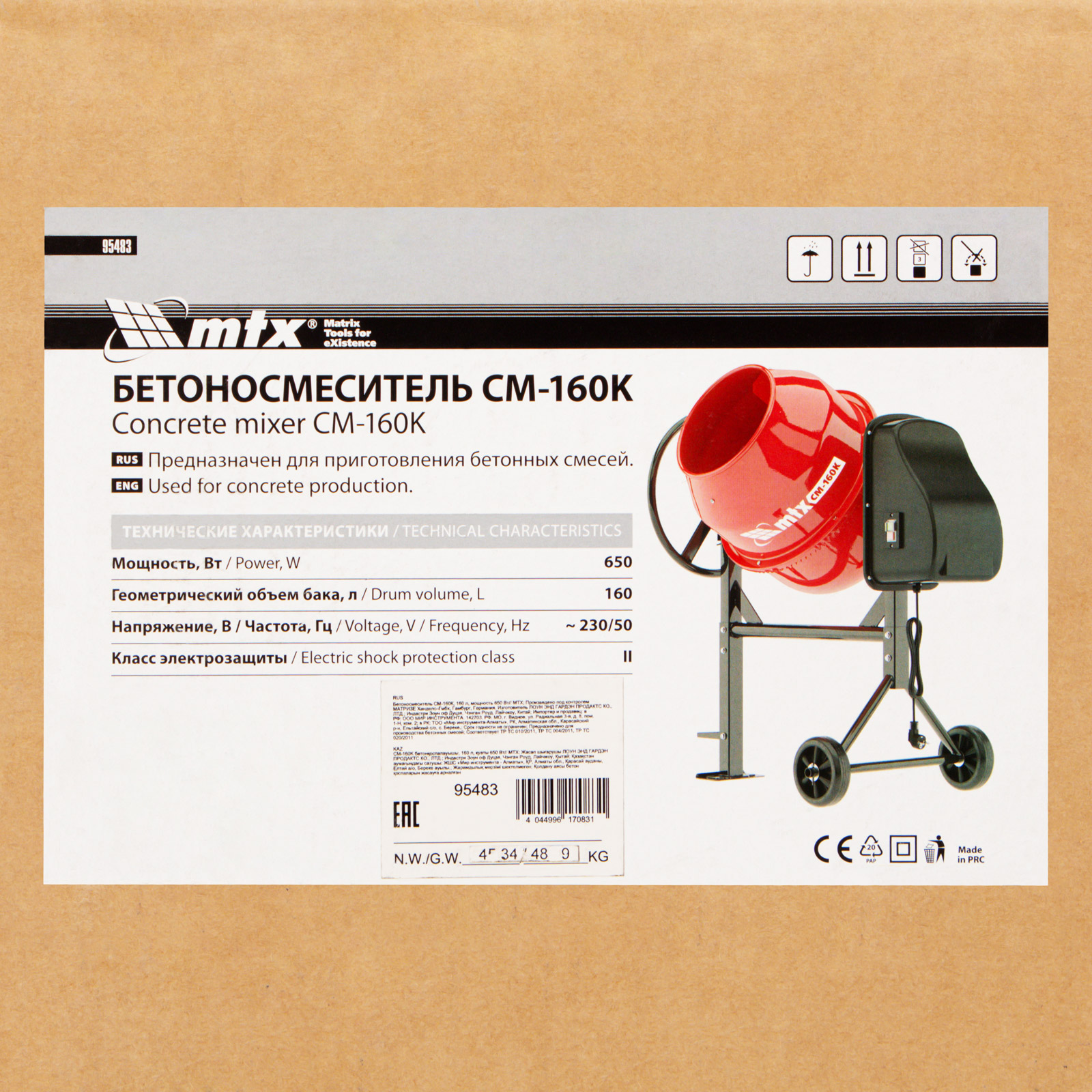 Бетоносмеситель может использоваться как на собственном участке, так и на небольших объектах для ремонтных, строительных, отделочных работ. Ёмкость бака составляет 160 л, что позволяет получать на выходе до 90 л готовой строительной смеси.,Мешалка отличается простотой и надежностью. Фиксатор штурвала позволяет наладить дозированную подачу смеси.
