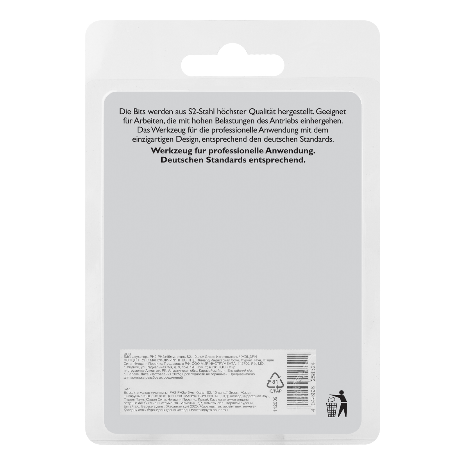 Двухсторонняя бита Gross 112009 длиной 45 мм, из стали S2, предназначена для работы с резьбовым крепежом со шлицем PH2. Биты с 2 рабочими профилями служат дольше, а также упрощают замену изношенных насадок. Оснастка используется с шуруповертами, электрическими отвертками и отвертками-держателями, оптимальна для профессионального применения.