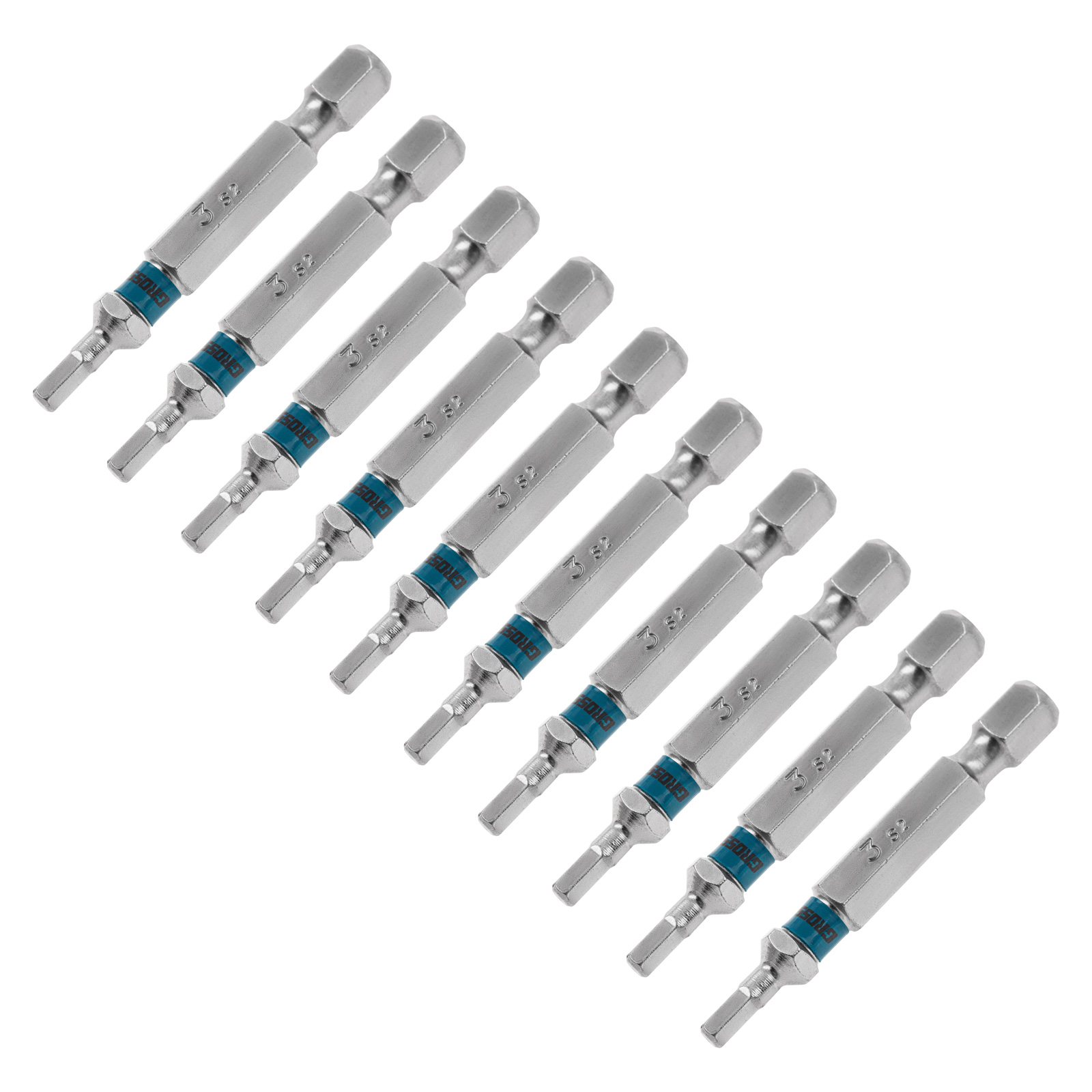 Набор бит Gross 11462 состоит из 10 сменных насадок HEX 3 х 50 мм с шестигранным хвостовиком 1/4 дюйма, изготовленных из стали S2, которые используются в качестве оснастки на шуруповертах. Биты типоразмера HEX3 предназначены для монтажа и демонтажа мебельных и велосипедных евровинтов. Шестигранный шлиц обеспечивает большую площадь соприкосновения с крепежом, что позволяет увеличить крутящий момент без риска повреждения биты.