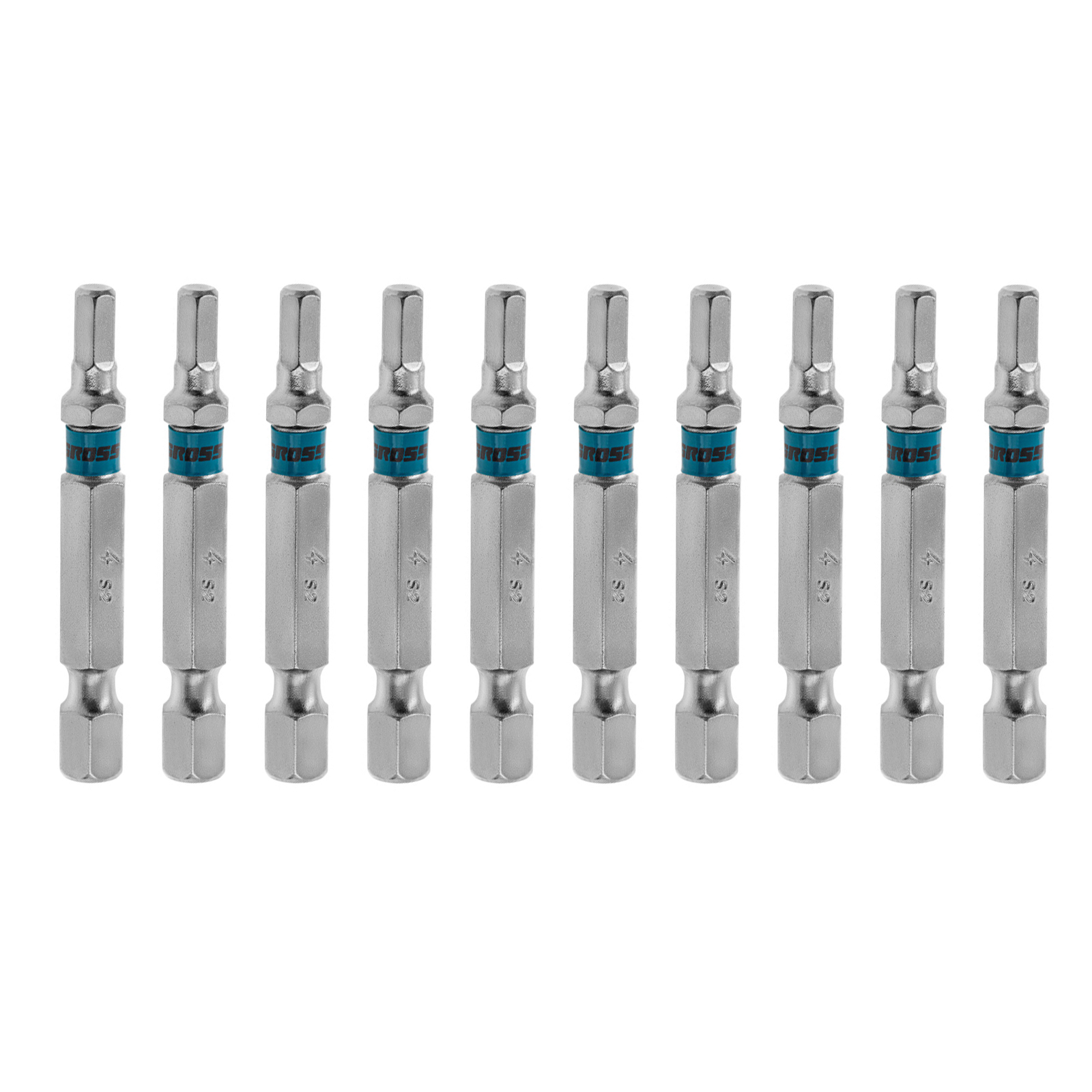 Набор бит Gross 11463 состоит из 10 сменных насадок HEX 4 х 50 мм с шестигранным хвостовиком 1/4 дюйма, изготовленных из стали S2, которые используются в качестве оснастки на шуруповертах. Биты типоразмера HEX4 предназначены для монтажа и демонтажа мебельных и велосипедных евровинтов. Шестигранный шлиц обеспечивает большую площадь соприкосновения с крепежом, что позволяет увеличить крутящий момент без риска повреждения биты.