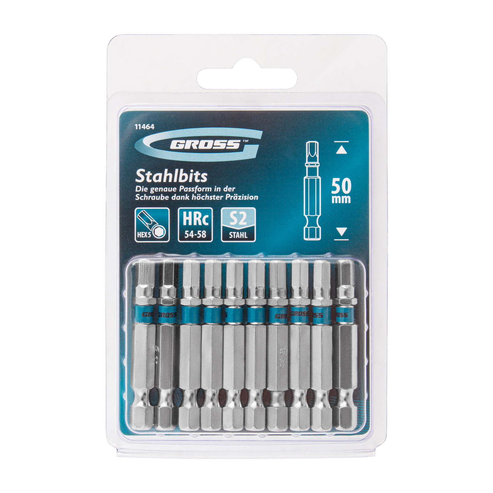 Набор бит Gross 11464 состоит из 10 сменных насадок HEX 5 х 50 мм с шестигранным хвостовиком 1/4 дюйма, изготовленных из стали S2, которые используются в качестве оснастки на шуруповертах. Биты типоразмера HEX5 предназначены для монтажа и демонтажа мебельных и велосипедных евровинтов. Шестигранный шлиц обеспечивает большую площадь соприкосновения с крепежом, что позволяет увеличить крутящий момент без риска повреждения биты.