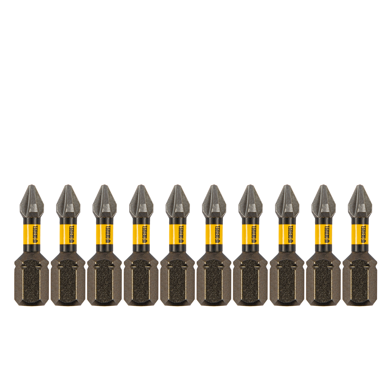 - Износостойкость — биты закалены до твердости 62 HRC, что повышает сопротивляемость к деформации при высоких нагрузках.
