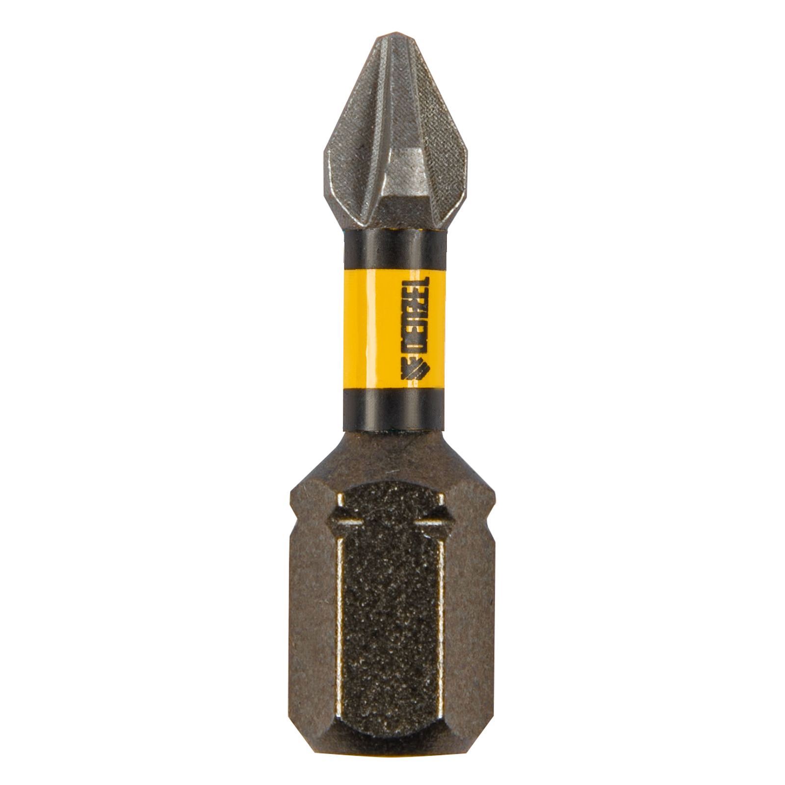 Набор бит торсионных PH1 x 25 мм Denzel 11684 с лазерной обработкой шлица, из стали S2, 10 шт., предназначен для монтажа и демонтажа резьбовых соединений с помощью ударного шуруповерта. Он незаменим в строительных, слесарных и монтажных работах, в автосервисах, при проведении ремонта в доме.,Торсионная зона способна пружинить, за счет чего она частично амортизирует тангенциальный удар от шуруповерта. Такое решение позволяет равномерно распределить нагрузку по бите, избежать поломки шлица и в разы увеличить объем работы, проделанный одной насадкой.
