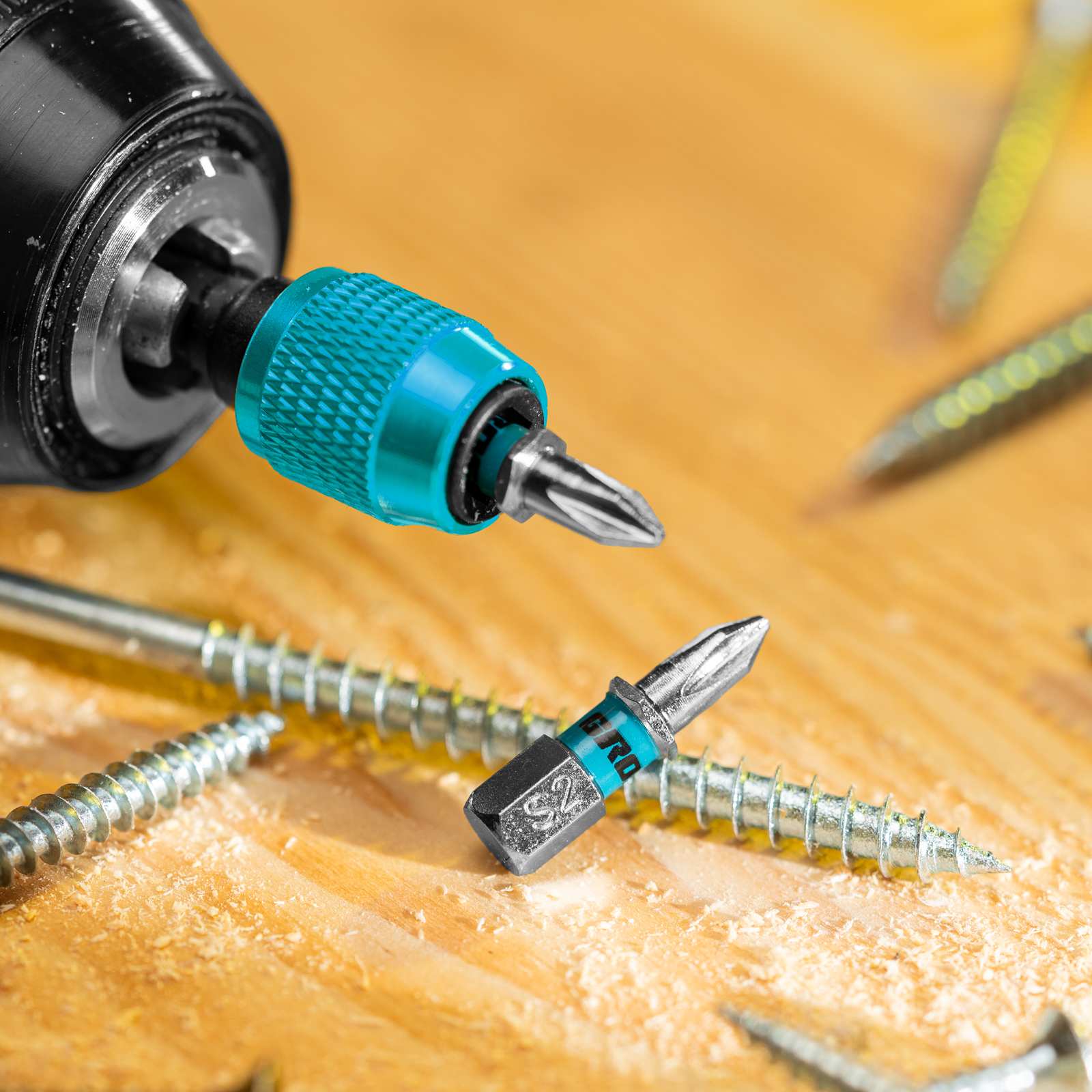 - Удобная эксплуатация — намагниченные шлицы облегчают работу и позволяют направлять шуруповерт с насаженным крепежом одной рукой, а другой придерживать закрепляемую деталь.