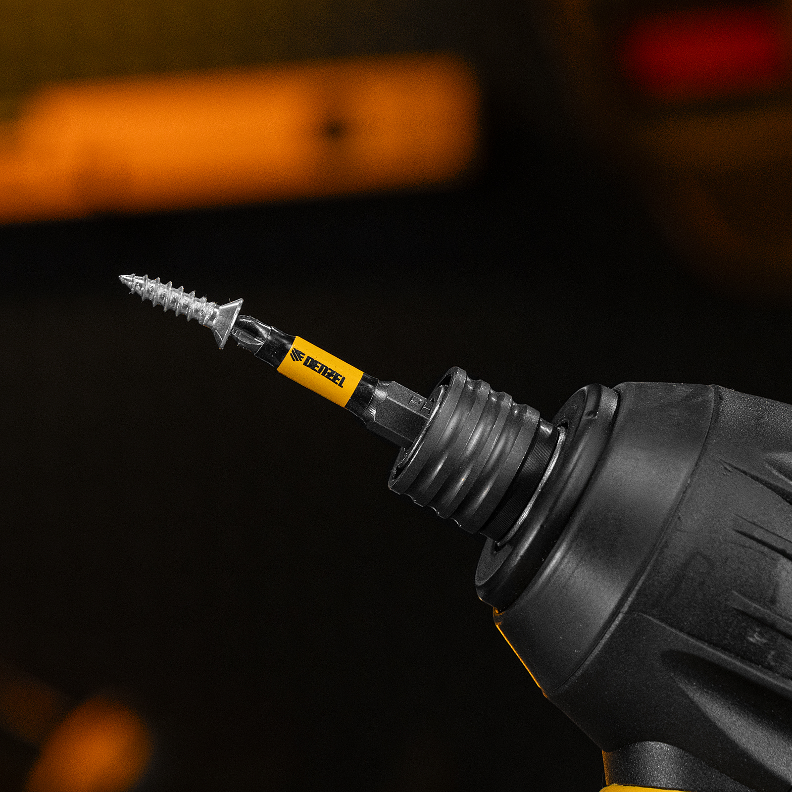 - Удобная эксплуатация — намагниченный шлиц облегчает работу и позволяет направлять шуруповерт с насаженным крепежом одной рукой, а другой придерживать закрепляемую деталь.