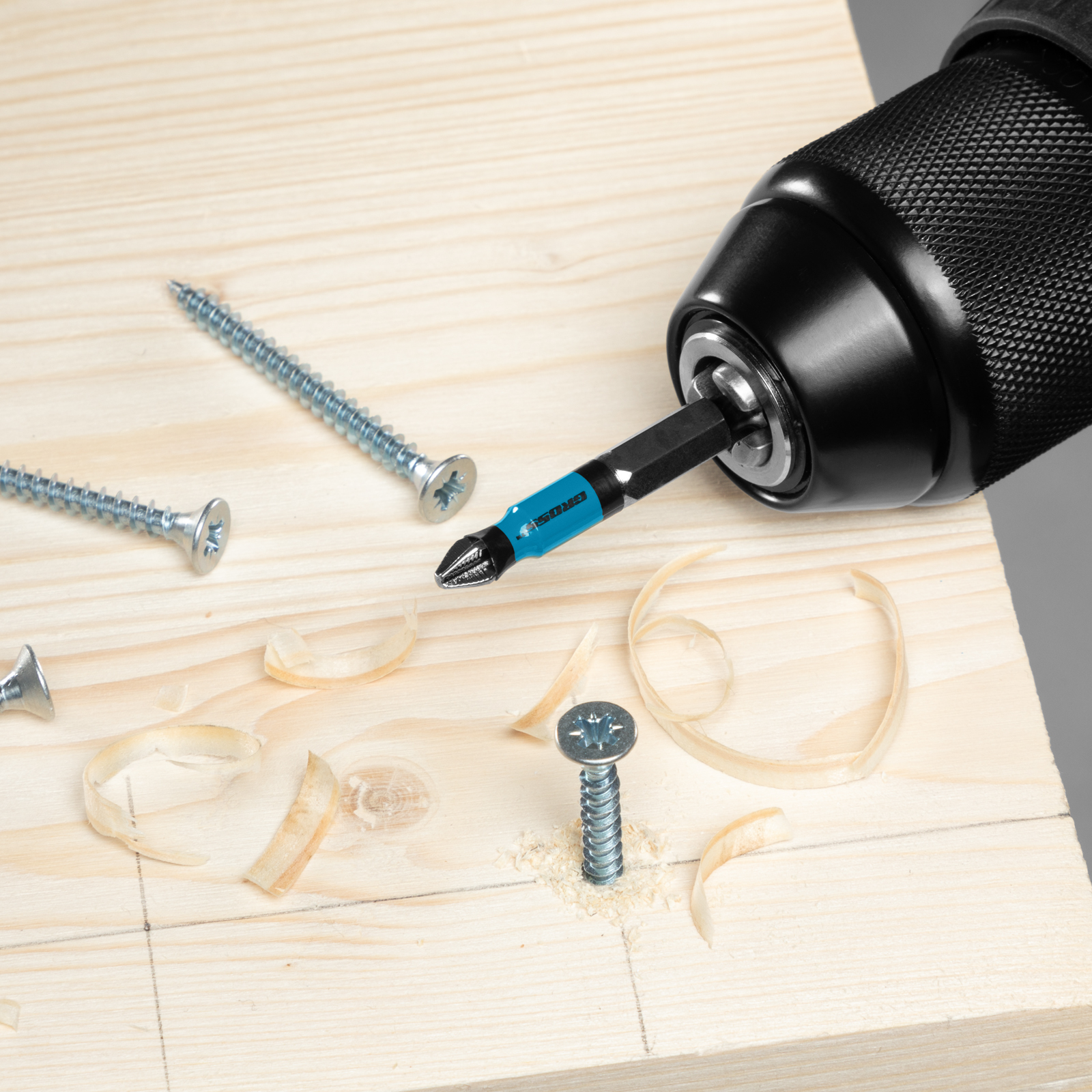 - Высокая результативность даже в ограниченном пространстве — благодаря удлиненному профилю 50 мм битами удобно работать в труднодоступных местах.