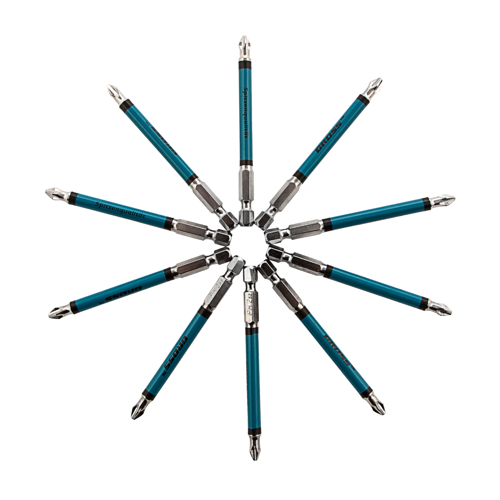 Набор односторонних бит PH2 x 90 мм Gross 11263 — это 10 сменных насадок из стали S2 с крестообразными шлицами и шестигранными хвостовиками 1/4 дюйма, рассчитанные на работу с шуруповертом. Профессиональная оснастка обеспечивает быстрый монтаж и демонтаж резьбовых соединений с углублением PH2.