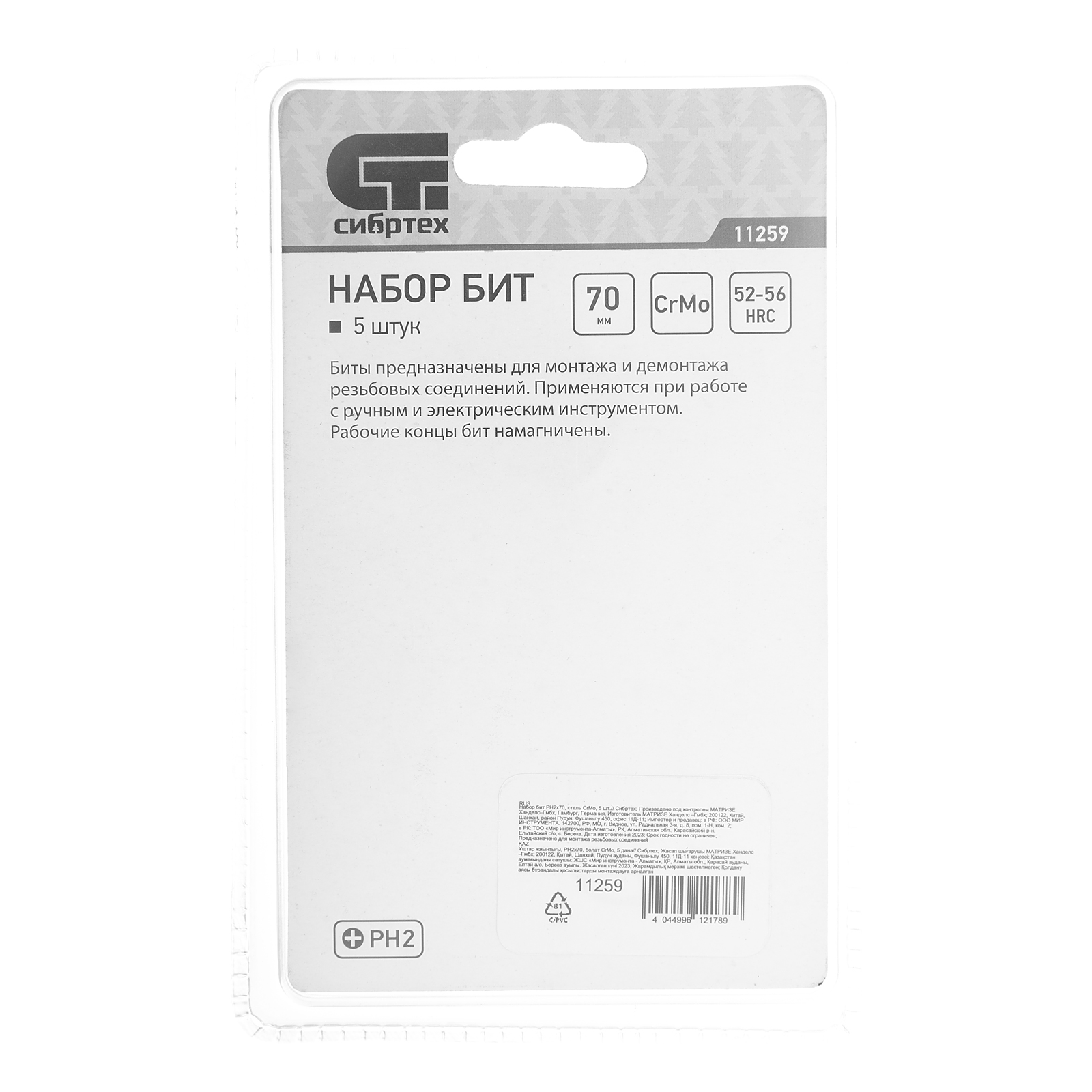 Набор бит Сибртех 11259 включает 5 крестообразных насадок PH2 x 70 мм из стали CrMo, с шестигранным присоединительным хвостовиком. Они используются в качестве сменной оснастки для шуруповертов, реверсивных и электрических отверток. Биты PH2 подходят для монтажа и демонтажа винтов и саморезов соответствующего типоразмера во время сборки мебели, проведения строительных, монтажных и ремонтных работ.