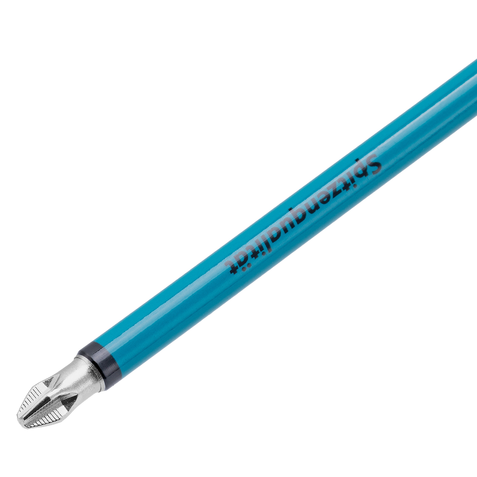 - Высокая результативность даже в ограниченном пространстве — благодаря удлиненному профилю 150 мм битами удобно работать в труднодоступных местах.