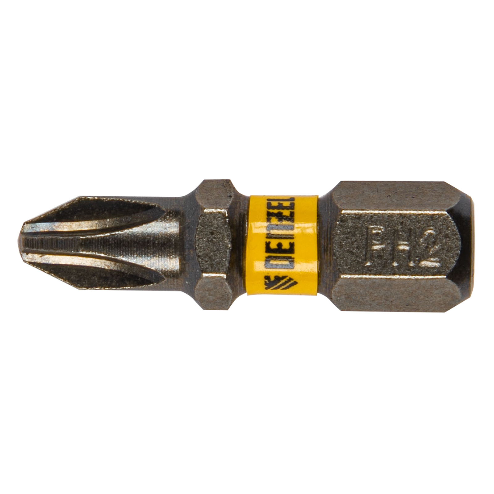 - Защита от подделок — цветное кольцо с логотипом ТМ Denzel на каждой бите подтверждает оригинальность товара.