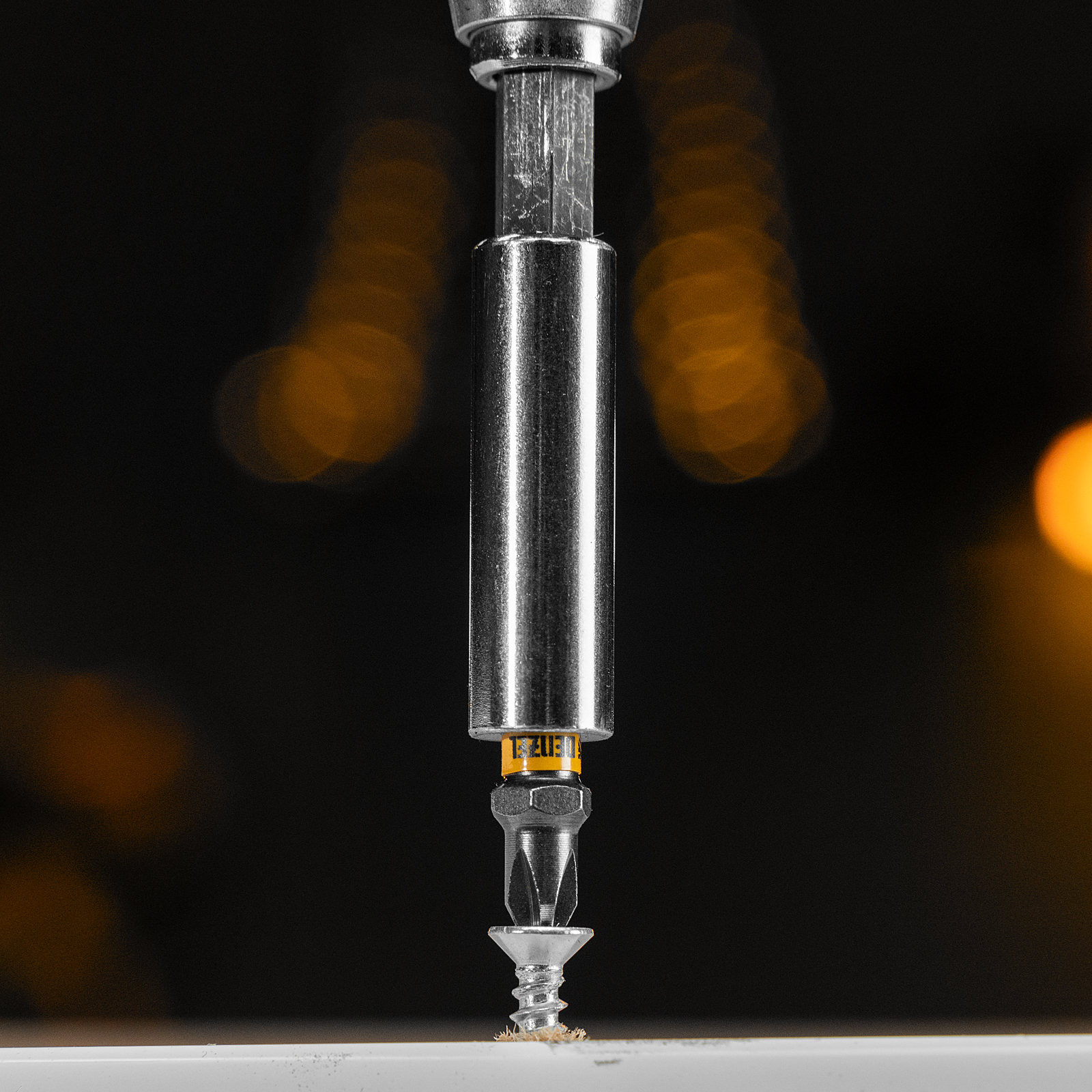 - Удобная эксплуатация — намагниченный шлиц облегчает работу и позволяет направлять шуруповерт с насаженным крепежом одной рукой, а другой придерживать закрепляемую деталь.