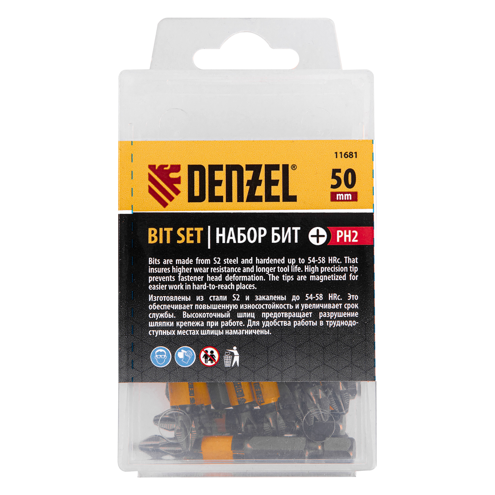 - Долговечность и износоустойчивость — биты изготовлены из японской легированной стали S2 повышенной прочности, закаленной до твердости 58 HRC.