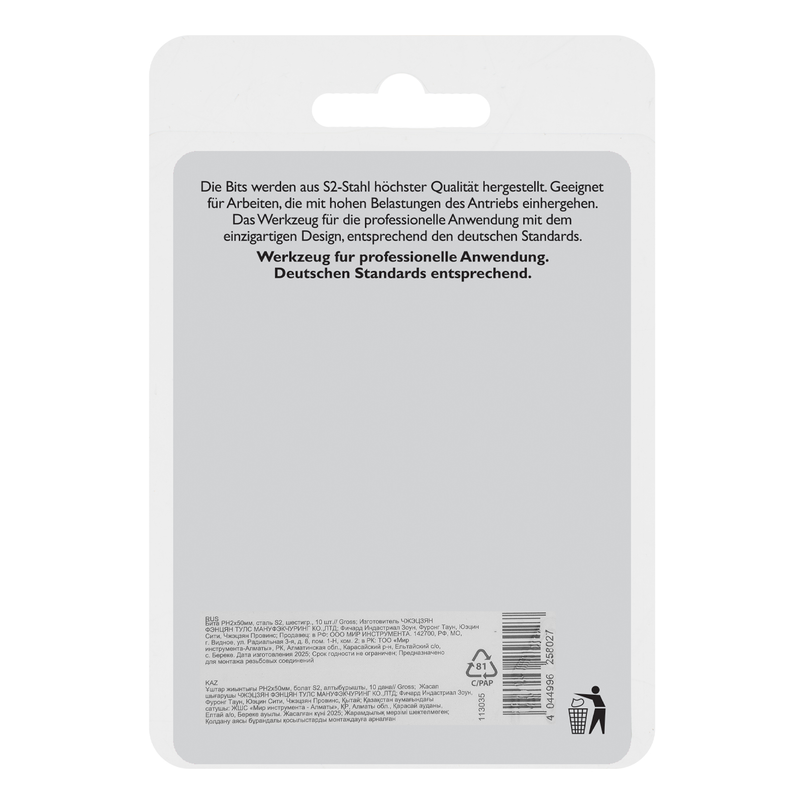 - Удобная упаковка — оснастка поставляется в жестком блистере с европодвесом, 10 штук хватит на целую бригаду.