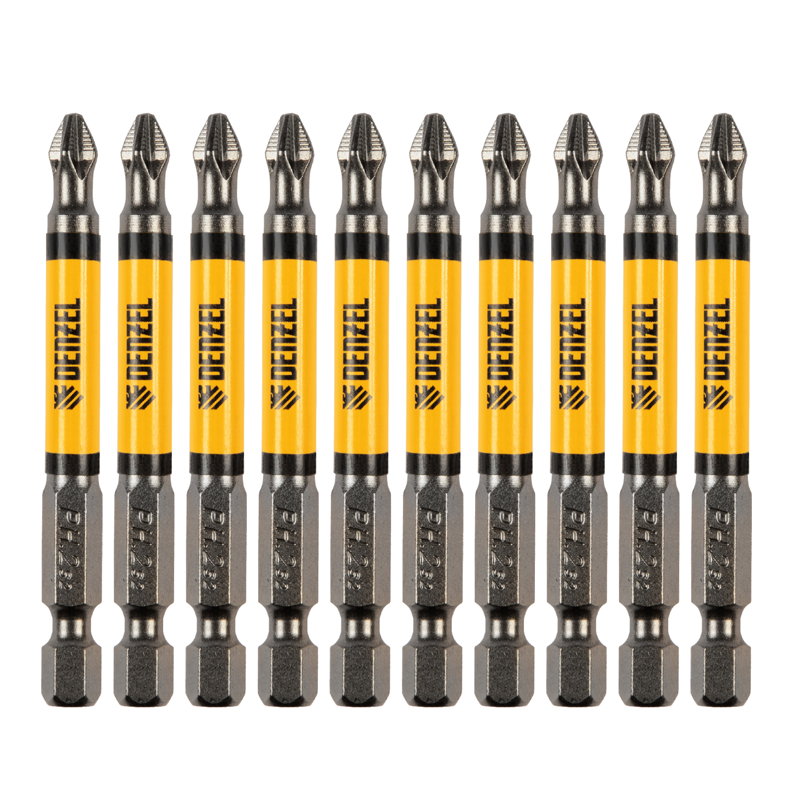 Набор односторонних бит с круглым профилем PH2 x 70 мм Denzel 11643 — это 10 сменных насадок из стали S2 с крестообразными шлицами и шестигранными хвостовиками 1/4". Профессиональная оснастка рассчитана на работу с шуруповертом, обеспечивает быстрый монтаж и демонтаж резьбовых соединений с углублением PH2.