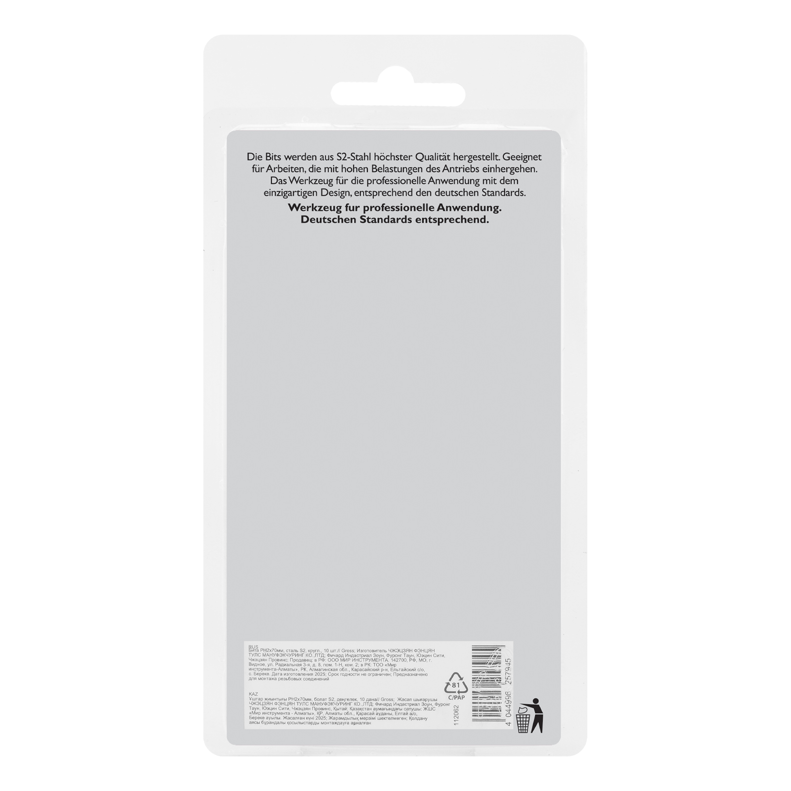- Износоустойчивость — биты изготовлены из японской легированной стали S2 повышенной прочности и закалены до твердости 62 HRC.