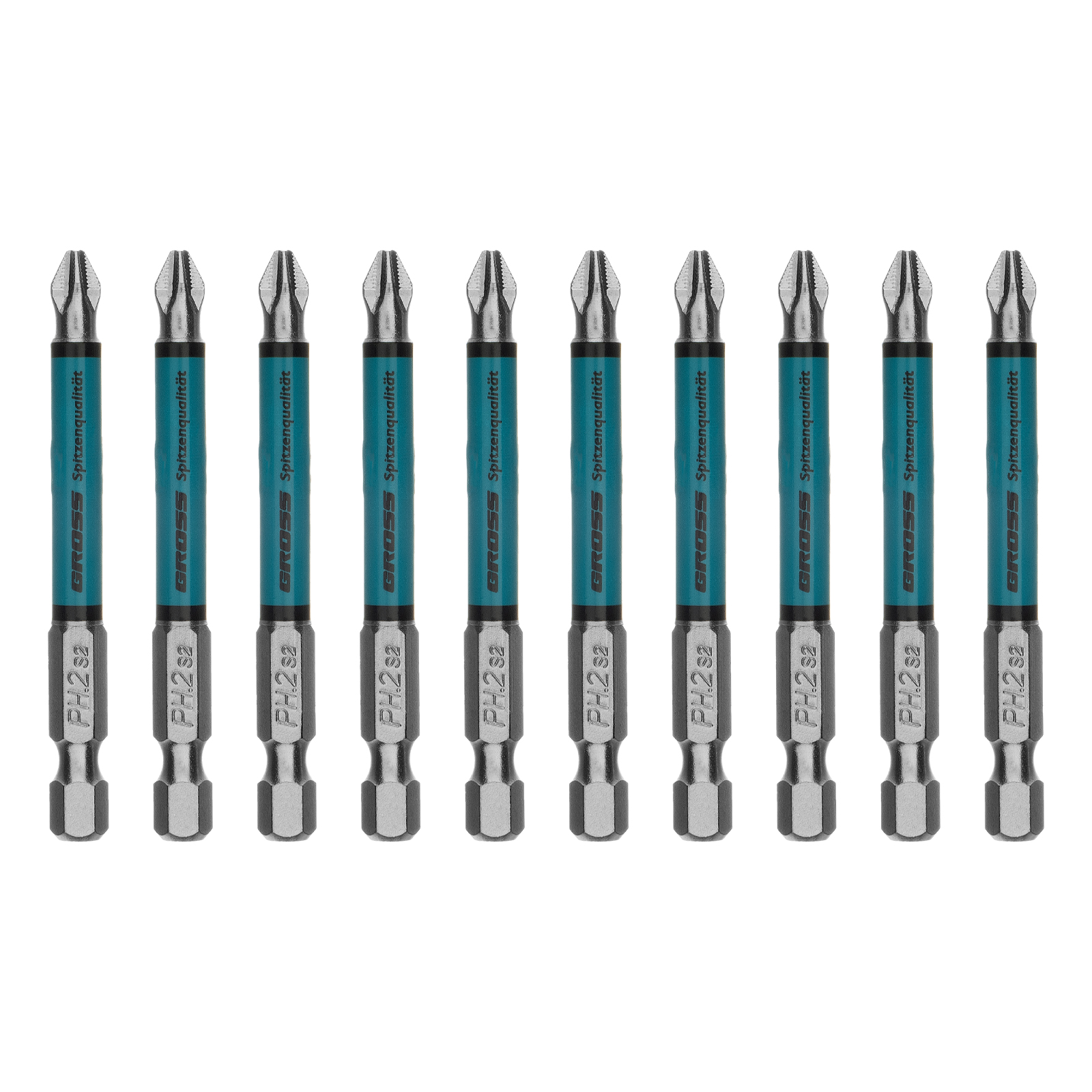 - Высокий показатель прочности — биты выполнены из японской легированной стали S2, рабочие части закалены до твердости 62 HRC.
