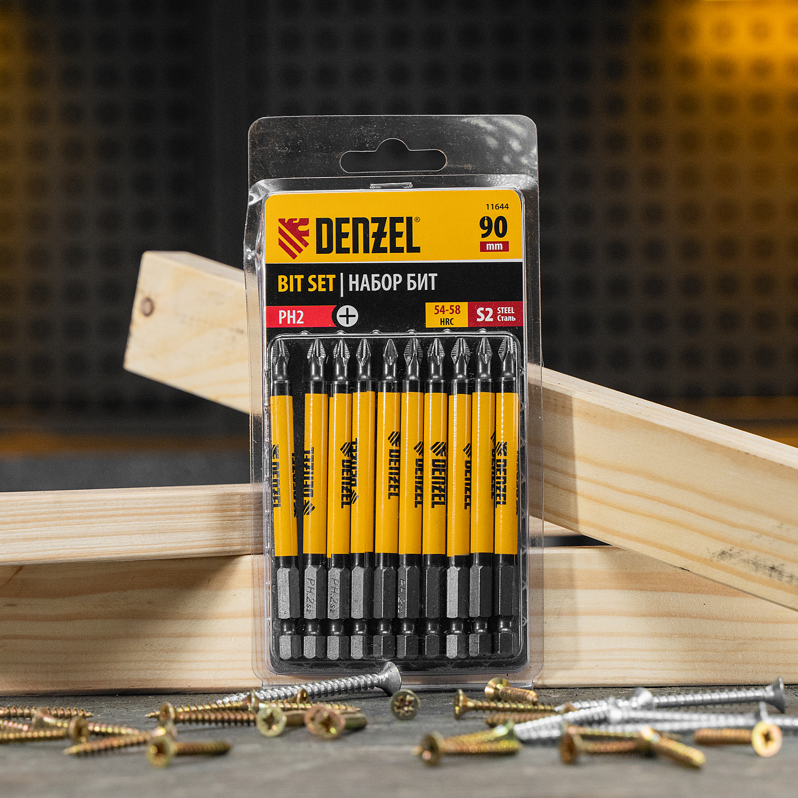 Набор односторонних бит PH2 x 90 мм Denzel 11644 — это 10 сменных насадок из стали S2 с крестообразными шлицами и шестигранными хвостовиками 1/4". Профессиональная оснастка рассчитана на работу с шуруповертом, обеспечивает быстрый монтаж и демонтаж резьбовых соединений с углублением PH2.