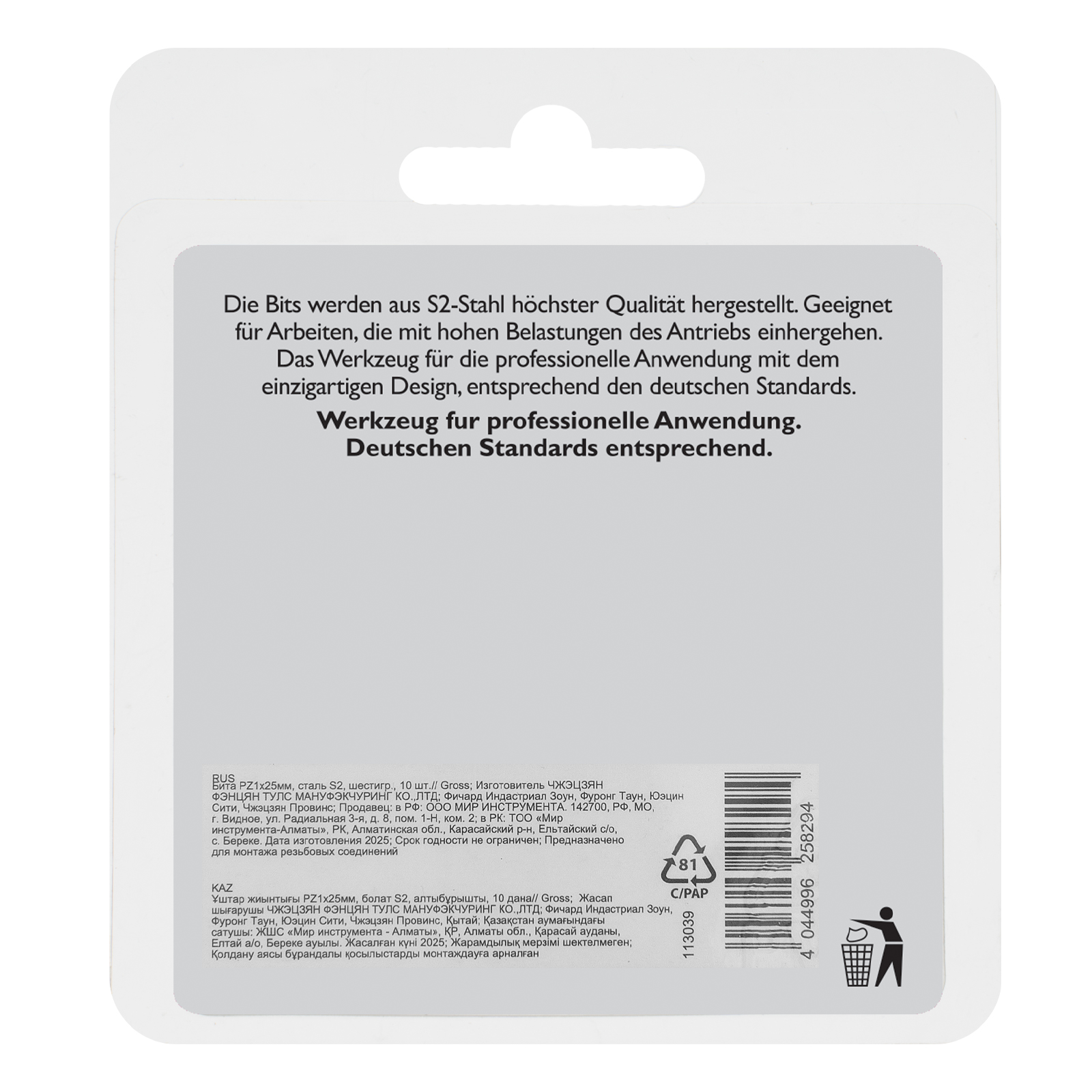 - Удобная упаковка — оснастка поставляется в жестком блистере с европодвесом, 10 штук хватит на целую бригаду.
